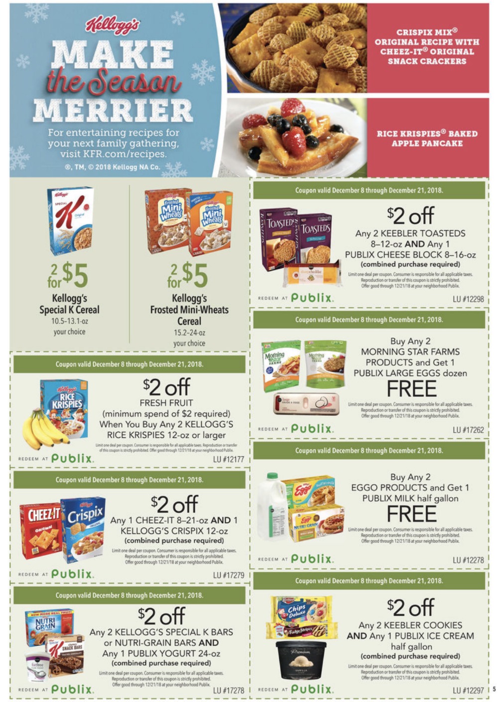 - $2 off Fresh Fruit (minimum spend of $2 required) wyb (2) Kellogg’s Rice Krispies, 12 oz or larger Grocery Advantage Buy Flyer “Extra Savings” In-Ad Publix Coupon (valid 12/8 to 12/21)