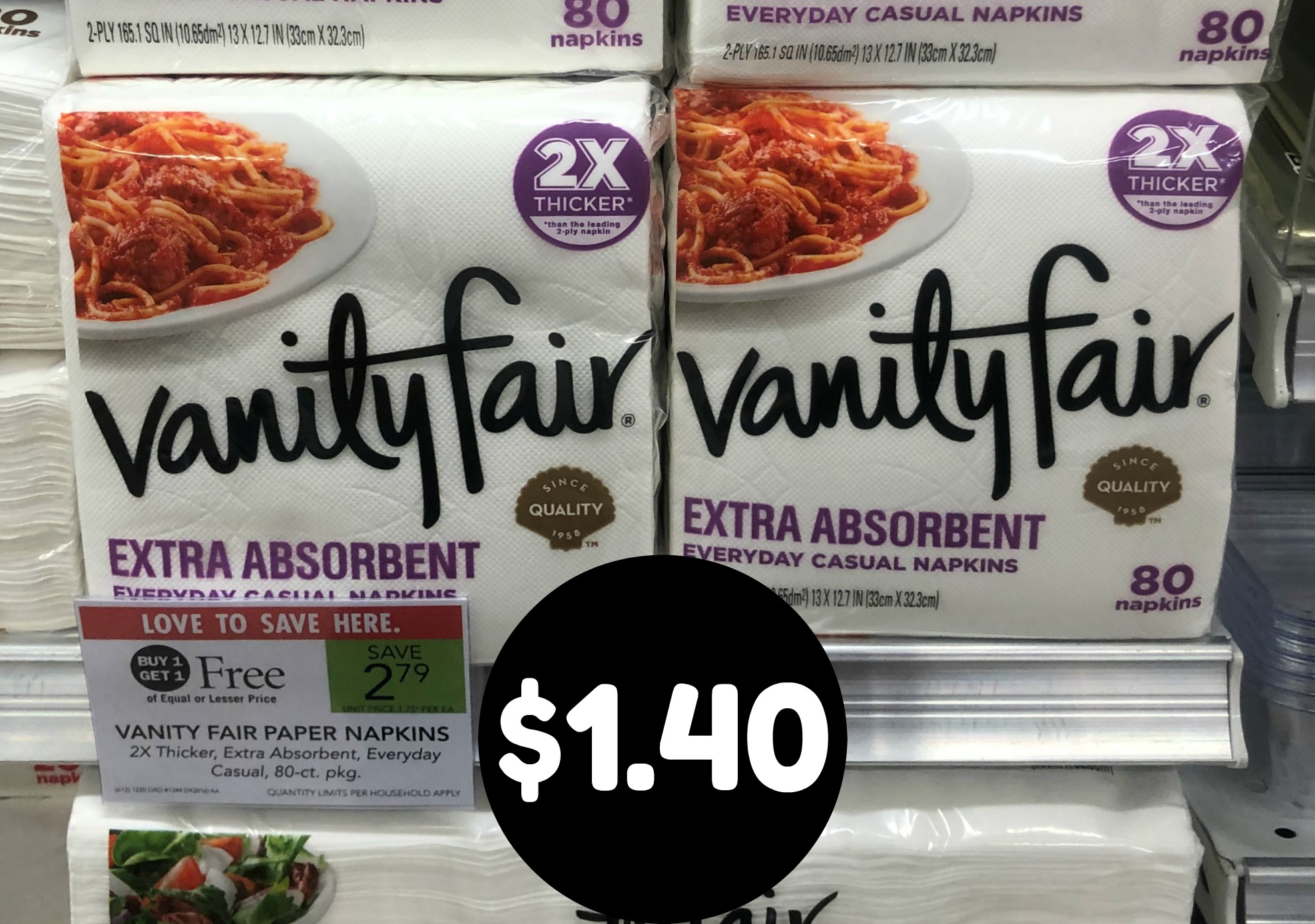 Don’t miss out on your chance to stock up on Vanity Fair Napkins at a super price right now at Publix. With the buy one, get one FREE sale you’ll get each pack for only $1.40 each.