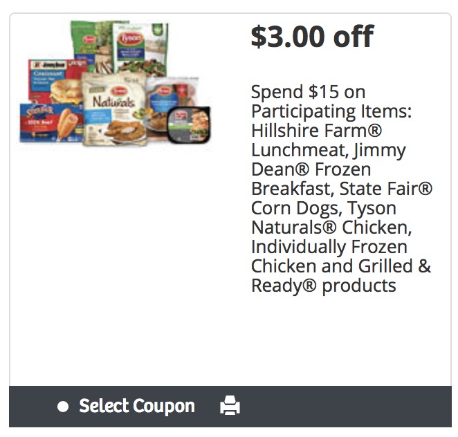 Don’t forget that you still have to pick up some great deals on lots of tasty products with the multi-product Tyson Foods coupon. Look for the coupon in Be The Best You booklet…or just print from home on the Get the Savings site. You’ll save a whopping $3 off a $15 purchase of Hillshire Farm® Lunchmeat, Jimmy Dean® Frozen Breakfast, State Fair® Corn Dogs, and Tyson Naturals® Chicken, Individually Frozen Chicken and Grilled & Ready® products!