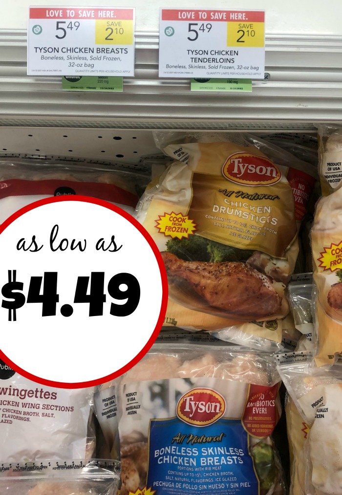 One of my favorite deals is happening right now at Publix. We have an unadvertised deal on Tyson® All Natural Boneless Skinless Chicken Breasts. If you get three bags and use the coupon, you pay only $4.49 per bag…that’s chicken for just $2.25/lb!