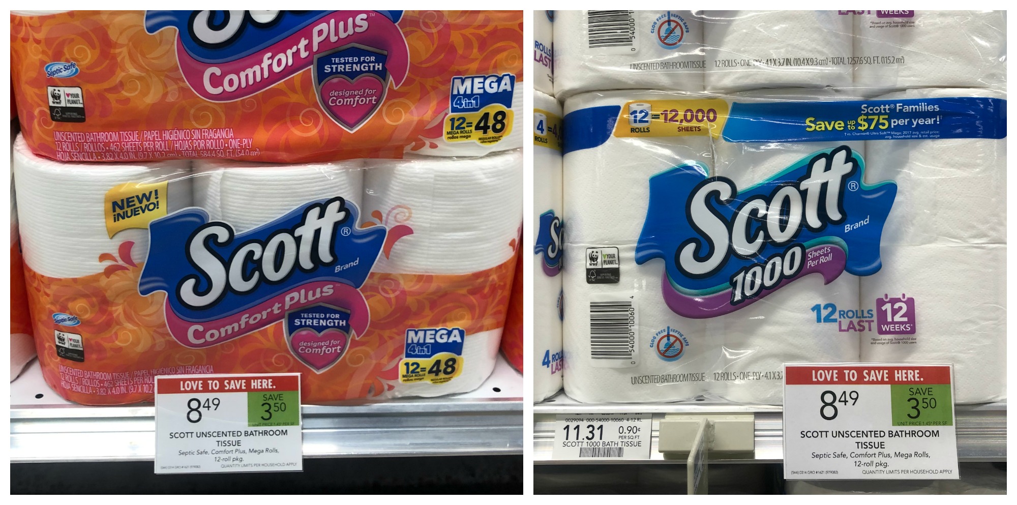 Scott® ComfortPlus™ Mega Roll or Scott® 1000 12 pk, $8.49 (reg price $11.99)
