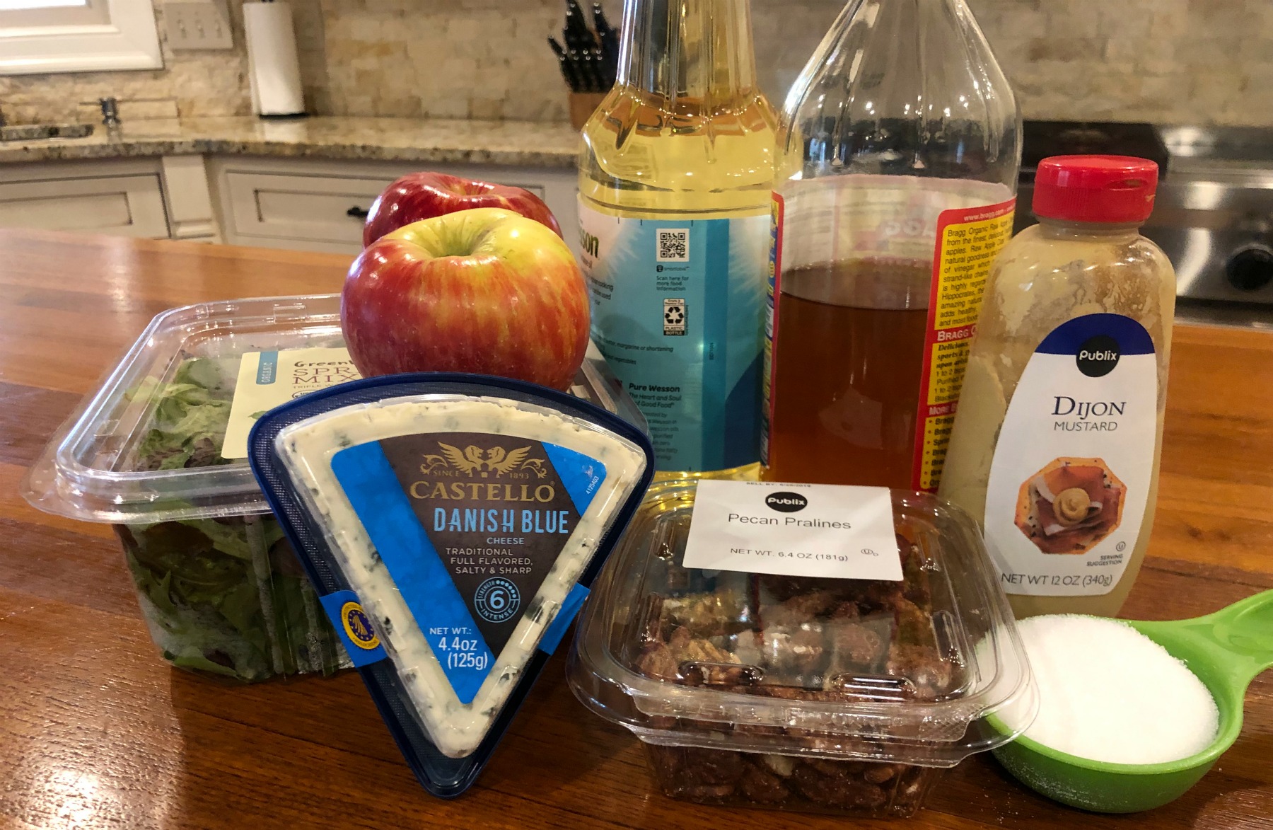 One of my favorite date night meals is a dish that doesn’t require any cooking at all. This Braeburn Salad recipe is packed with AMAZING flavor and comes together in a flash. Given to me by my sister-in-law, this recipe can be made in just minutes. Pair with a glass of wine or your favorite craft beer for the ultimate date night meal at home!