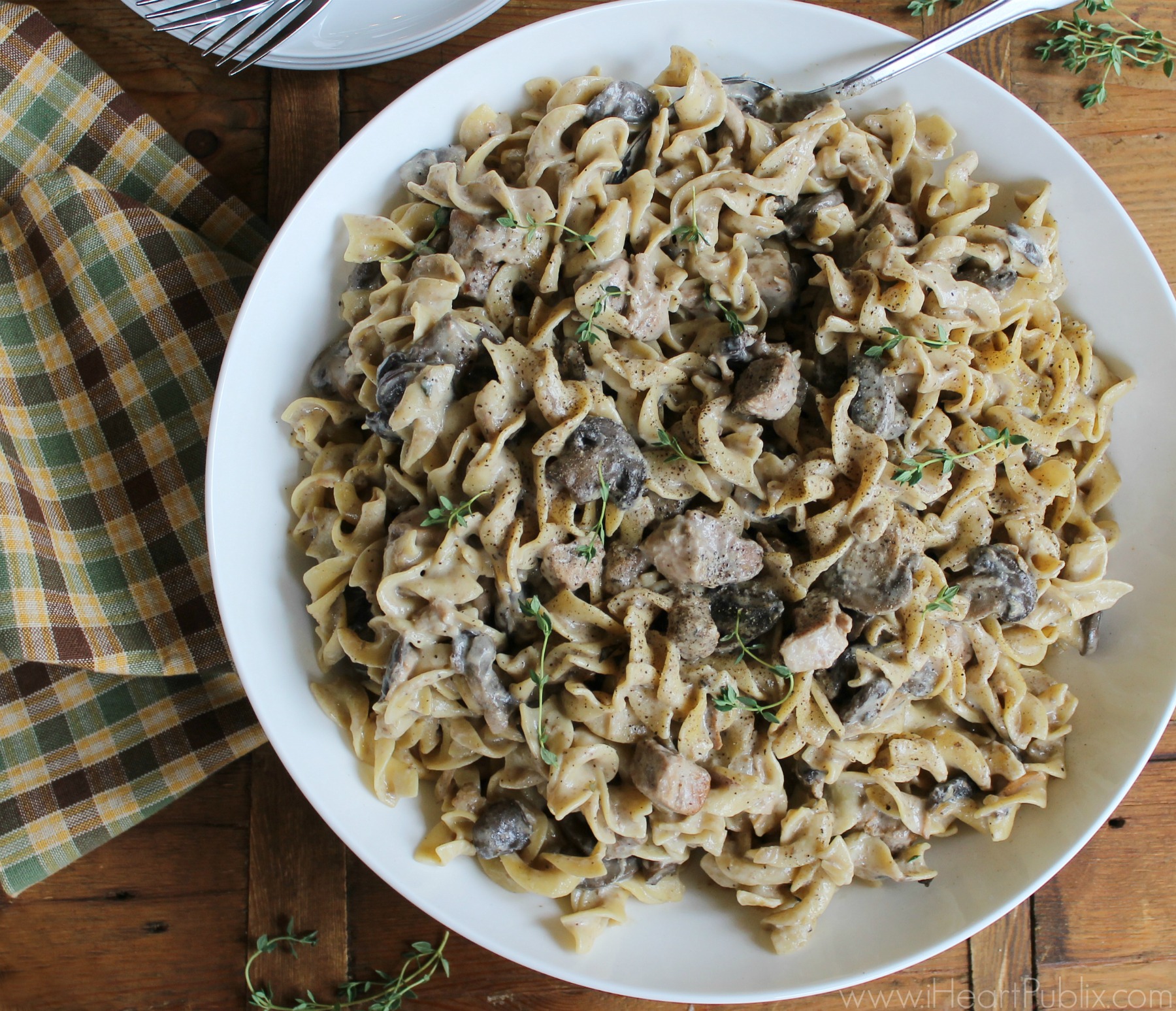 Take my Slow Cooker Pork Stroganoff for example, it’s just one of the amazing meals that I can whip up using Smithfield® Fresh Pork. It only takes maybe 5 minutes to get everything prepped and in the slow cooker. Because the pork is already marinated, I don’t need a ton of ingredients to get great flavor. I just toss everything in and let the slow cooker do it’s magic. Then, when we get home and are ready to eat, I just add a little sour cream to the pot and boil up some noodles. By the time the table is set and everyone is washed up, dinner is ready to go!