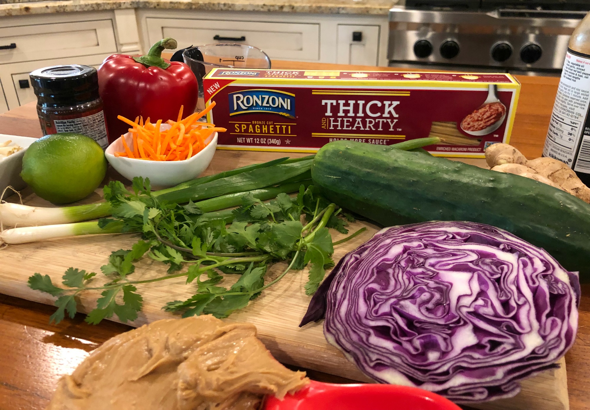 One thing I wouldn’t change is the pasta. For this recipe, I prefer Ronzoni Thick and Hearty™ pasta. The peanut butter sauce is not super thick so you NEED a pasta that clings and hold as much as that amazing sauce as possible.