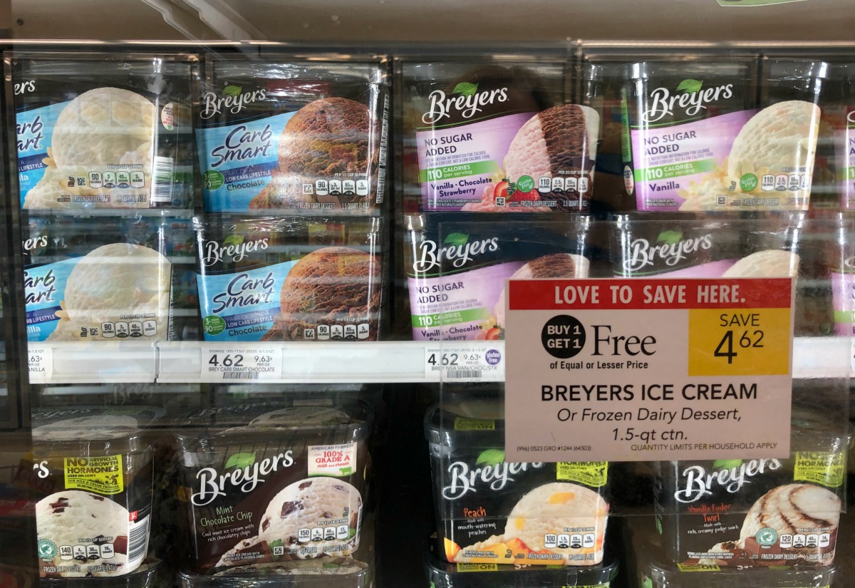 Breyers Ice Cream or Frozen Dairy Dessert, 1.5 qt, BOGO $4.62 – $5.75