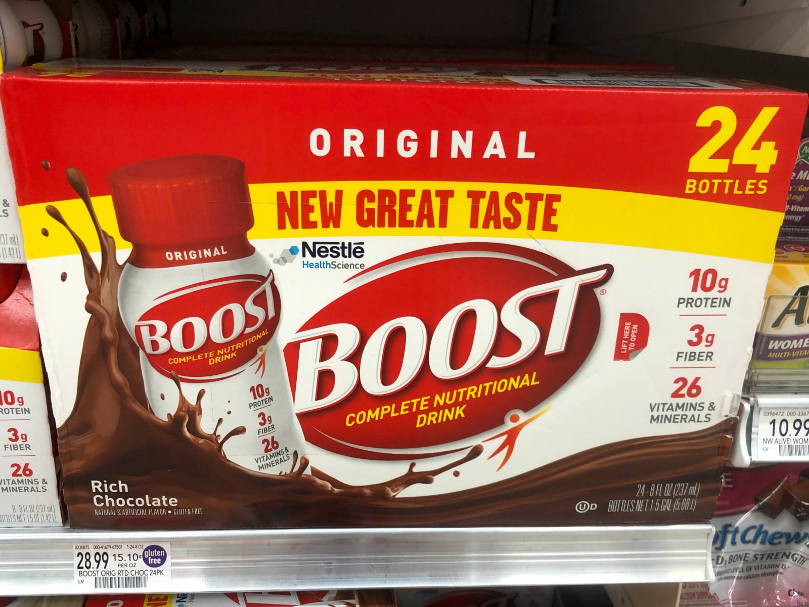 AND, if you want to make sure you always have plenty of your favorite BOOST® Nutritional Drinks on hand, be on the lookout for 24-count packages of BOOST® Original Chocolate Drink when you shop. This size is only available in select stores. That big pack helps ensure you have plenty of tasty nutrition on hand whenever you need it.