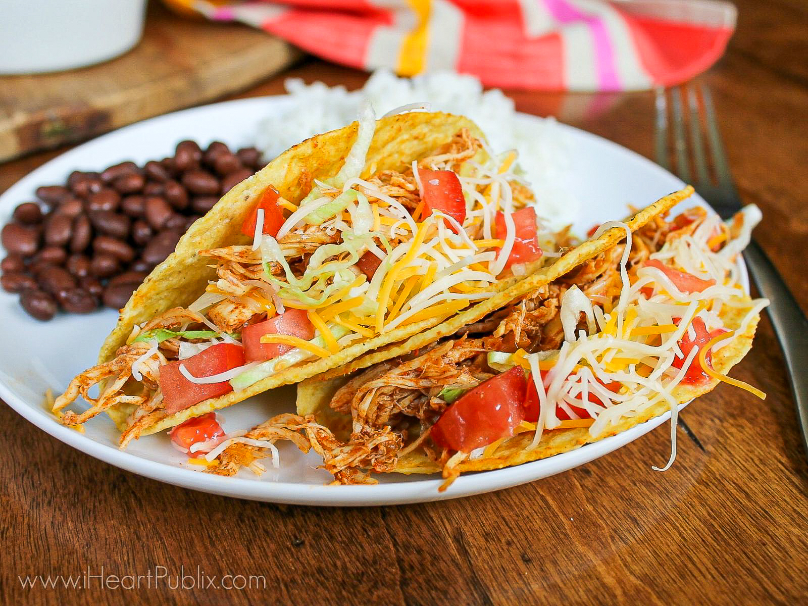 I always work on my menu every Sunday night so that I can get a game plan for the coming week. I look at the sneak peek and try to come up with meals based on the sales and what I have on hand. When I spotted the combination of deals in the ad this week, I knew exactly what I would add to my menu – Slow Cooker Chicken Tacos!
