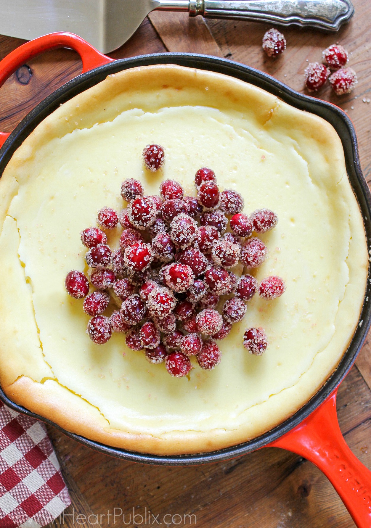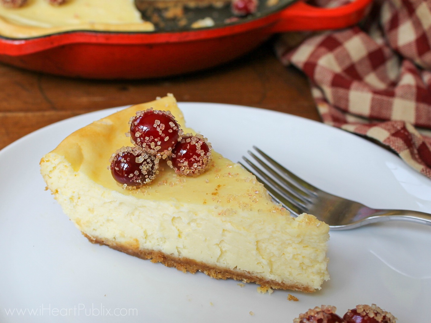 Let me tell you, the cheesecake tasted absolutely incredible—cracks and all! It was rich and creamy and had the perfect amount of crust. As you can see, I added some sugared cranberries as an extra touch. That sweet and tart combo was a nice contrast AND helped to hide the little flaws.