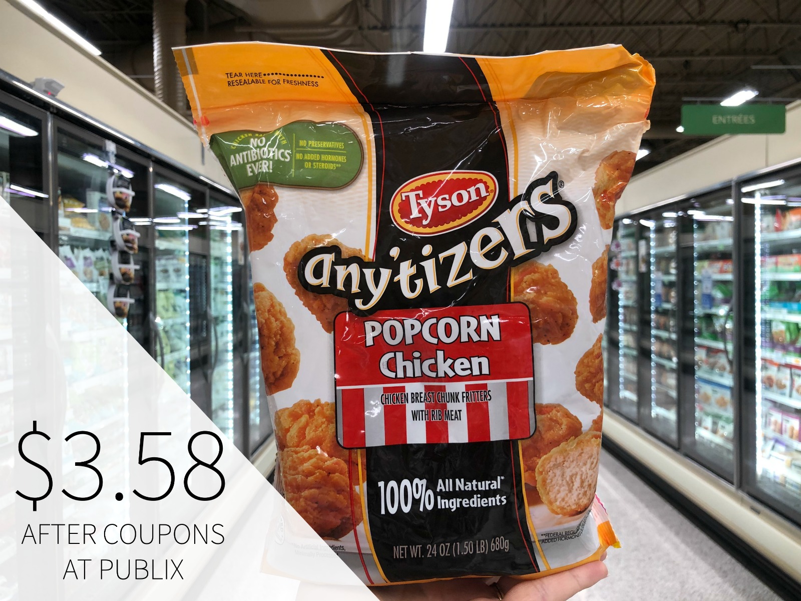 -$3/$15 Participating Tyson Products: Tyson Any’tizers Snacks, Nuggets, Strips, Tenders or Fully Cooked Chicken or State Fair Corn Dogs (frozen) Publix Coupon in the Publix Green Grocery Flyer valid 1/18 to 1/31/20