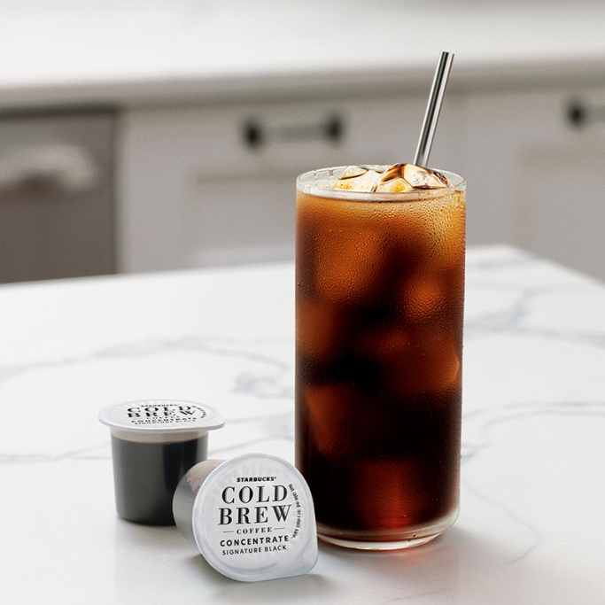 Smooth, delicious and perfectly yours, the signature Starbucks® Cold Brew you love is now easier to make at home. The folks at Starbucks cold-steeped their custom blend of cold brew coffee to create this rich concentrate. So you simply pour the concentrate over ice, mix with water, then customize with cream, sugar or flavors.