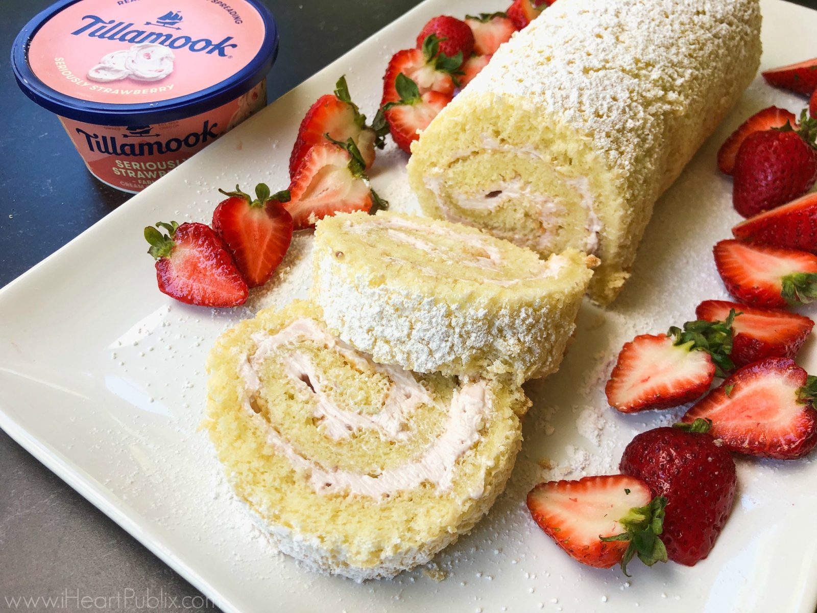 A cake roll is one of the easiest types of cakes to make. You simply bake up a sponge cake, roll it up to cool then fill with jelly, frosting—OR some tasty Tillamook Cream Cheese Spread.
