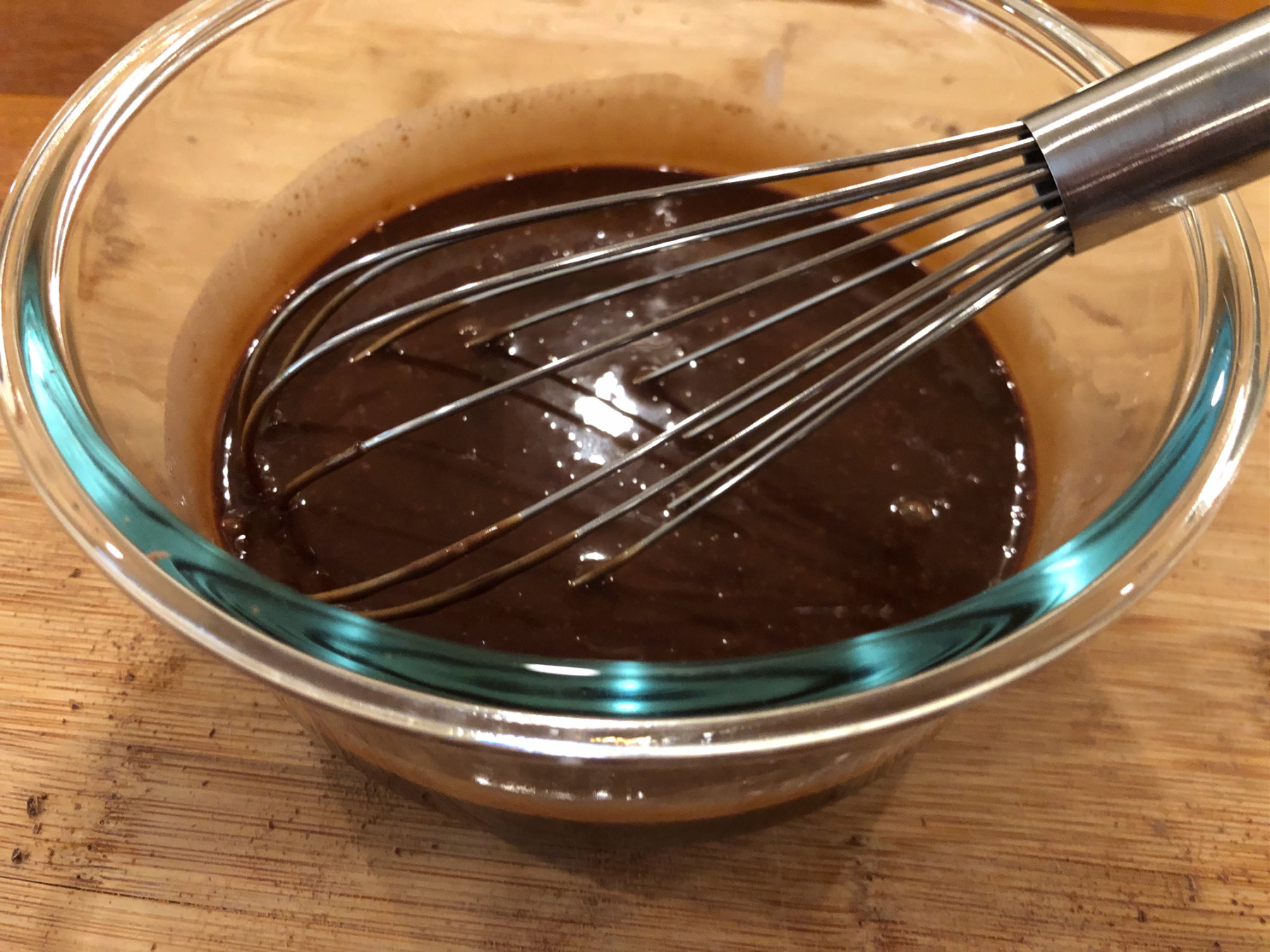 - Pour the warm heavy whipping cream over the chopped chocolate and allow it to sit for 3 minutes. Start whisking the mixtures slowly from the middle of the bowl, and continue whisking in one direction until the mixture is silky smooth and combined.