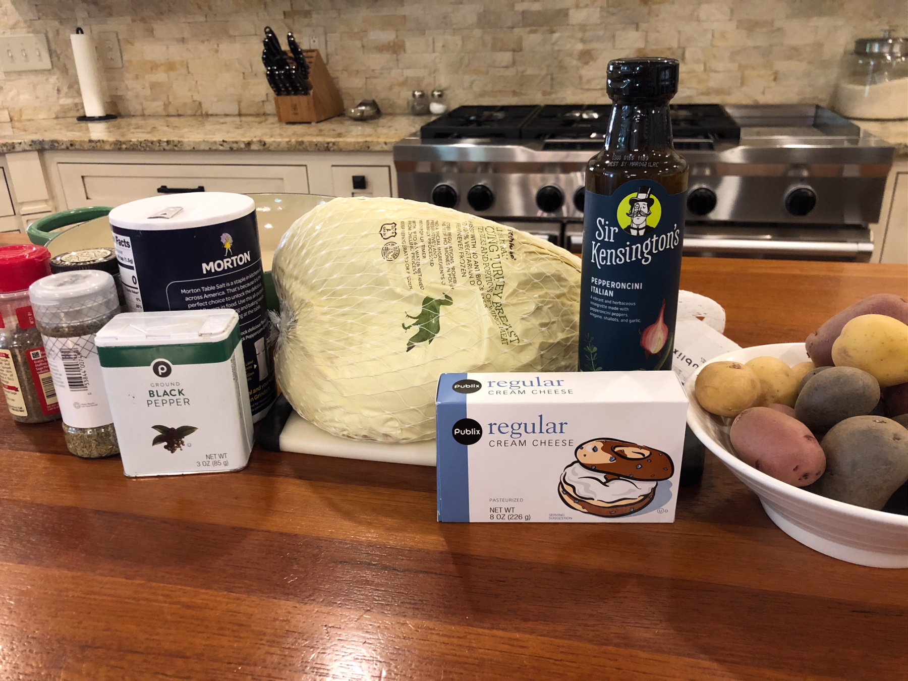 Pick up a few ingredients including a turkey (breast or whole bird), some cream cheese and a bottle of Sir Kensington’s Vinaigrette and your are on your way to a tasty meal that includes a bird that is incredibly moist and juicy!