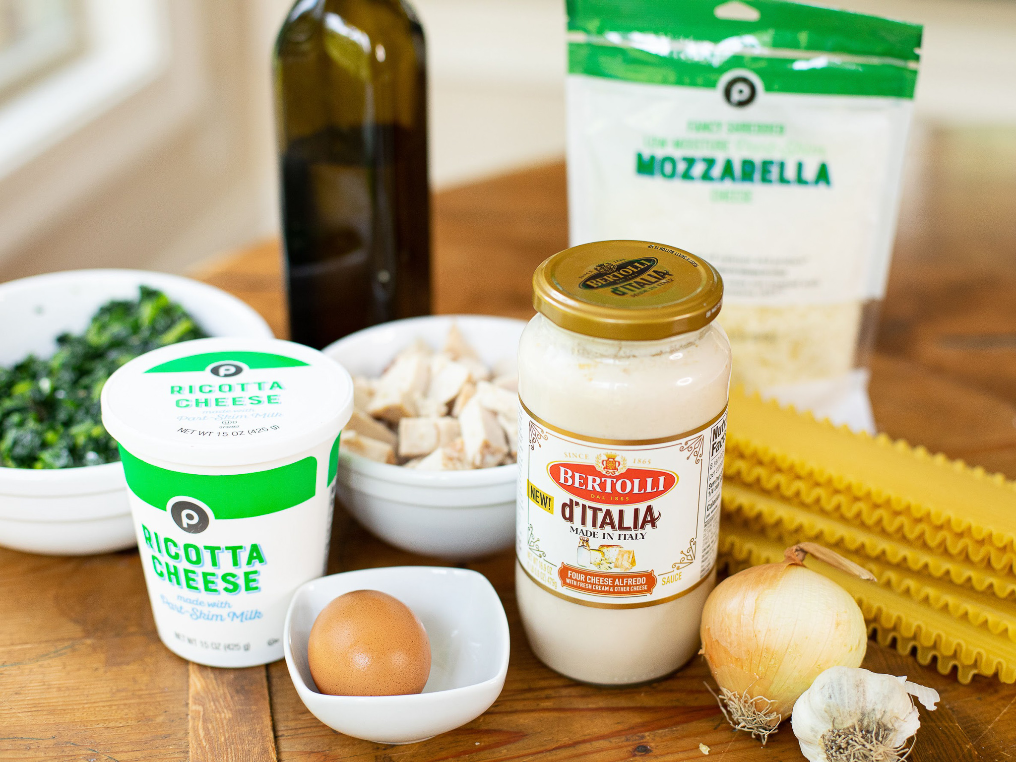 Because I want lots of delicious cheese in my lasagna, I prefer to go with the Bertolli d’Italia Four Cheese Alfredo Sauce in this recipe. That plus some rotisserie chicken from the Publix Deli, some spinach, and a few other ingredients, you have the makings of hearty and delicious dinner that’s ready in a flash.