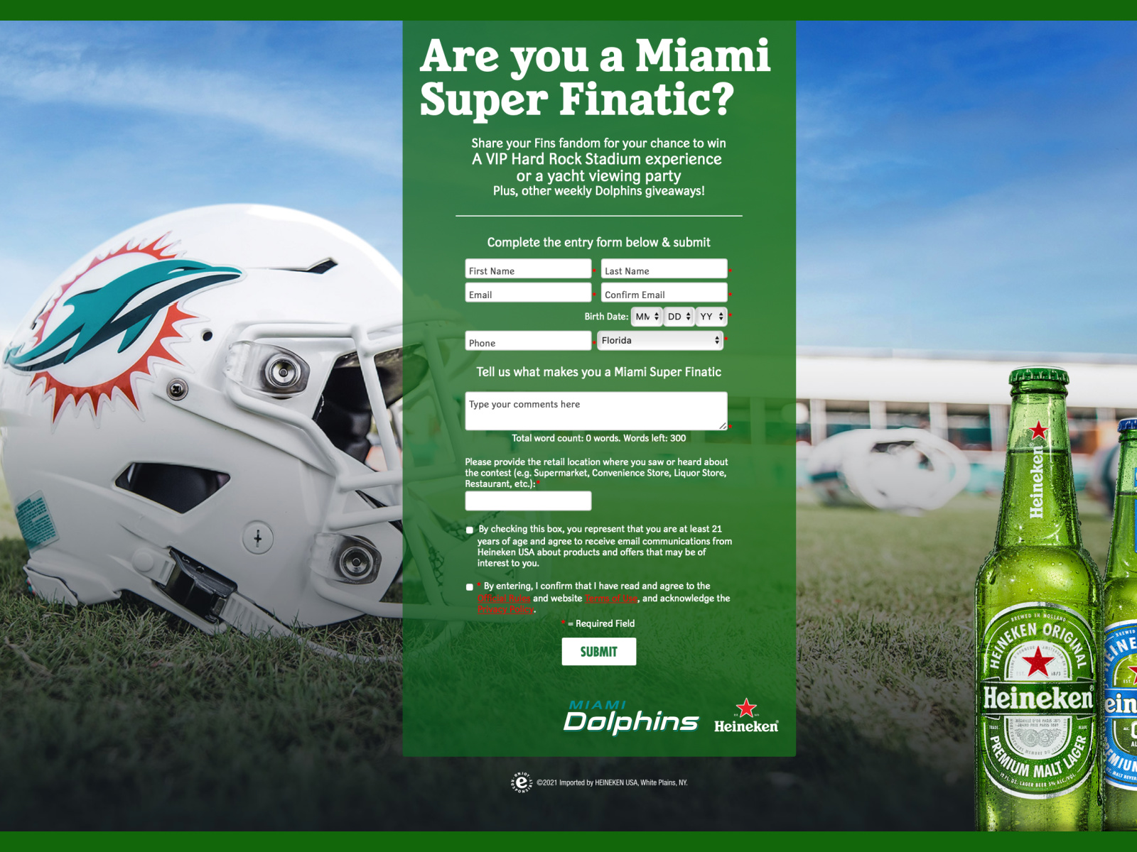 Have you entered the Heineken Miami Super FINatics Sweepstakes yet? If not, remember you can enter once every day through 1/9/22 for a chance to WIN!!