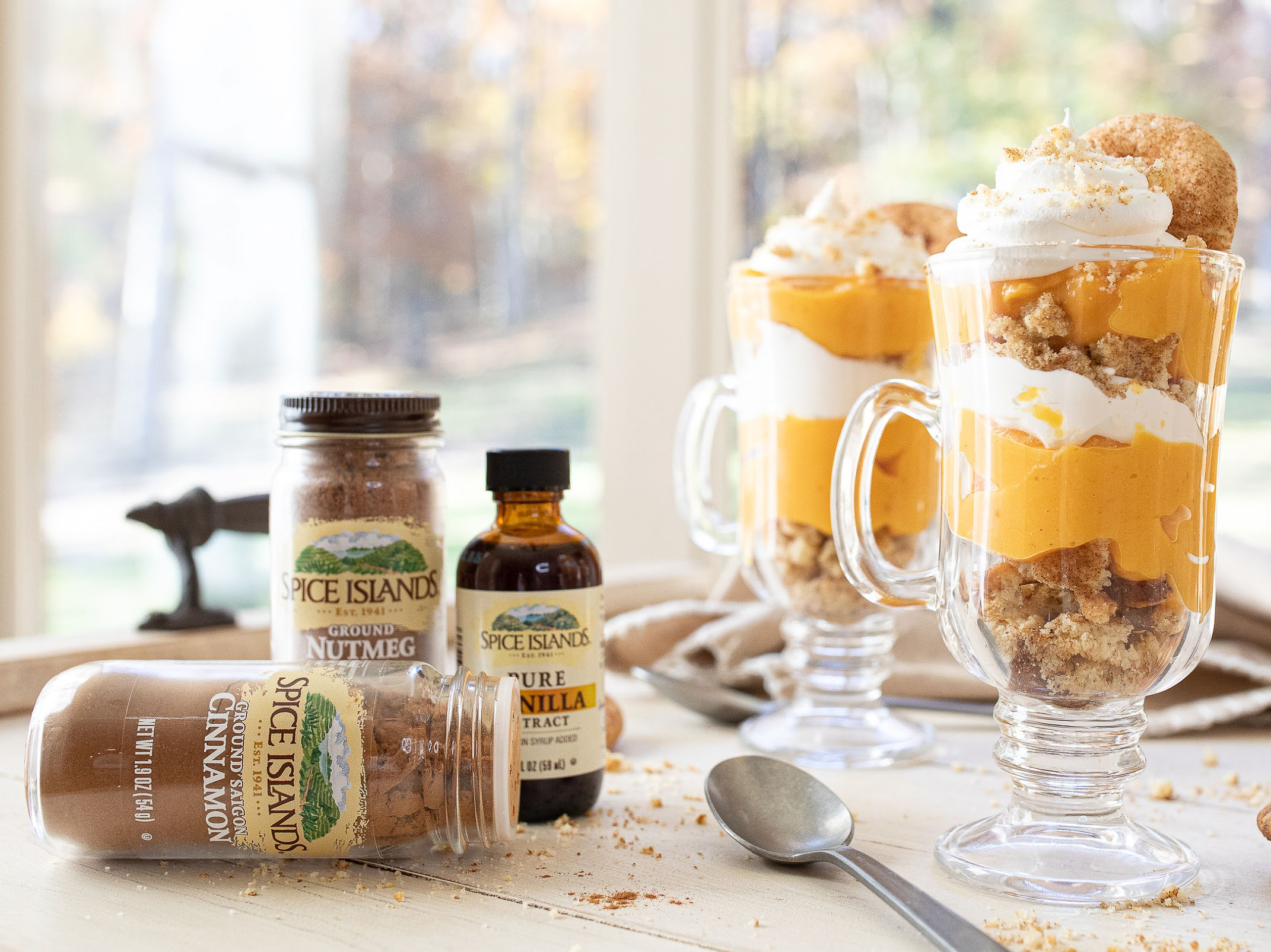 While a bit little less traditional, my Snickerdoodle Pumpkin Pudding Parfait is an easy option that’s packed with AMAZING flavor. Between the buttery smoothness of the pumpkin pudding and the warm, sugary taste of the snickerdoodles, it’s like the signature flavors of fall all got together for a party in a glass! What really takes this parfait to the next level, though, is the combination of Spice Islands Cinnamon, Nutmeg, and Pure Vanilla extract.