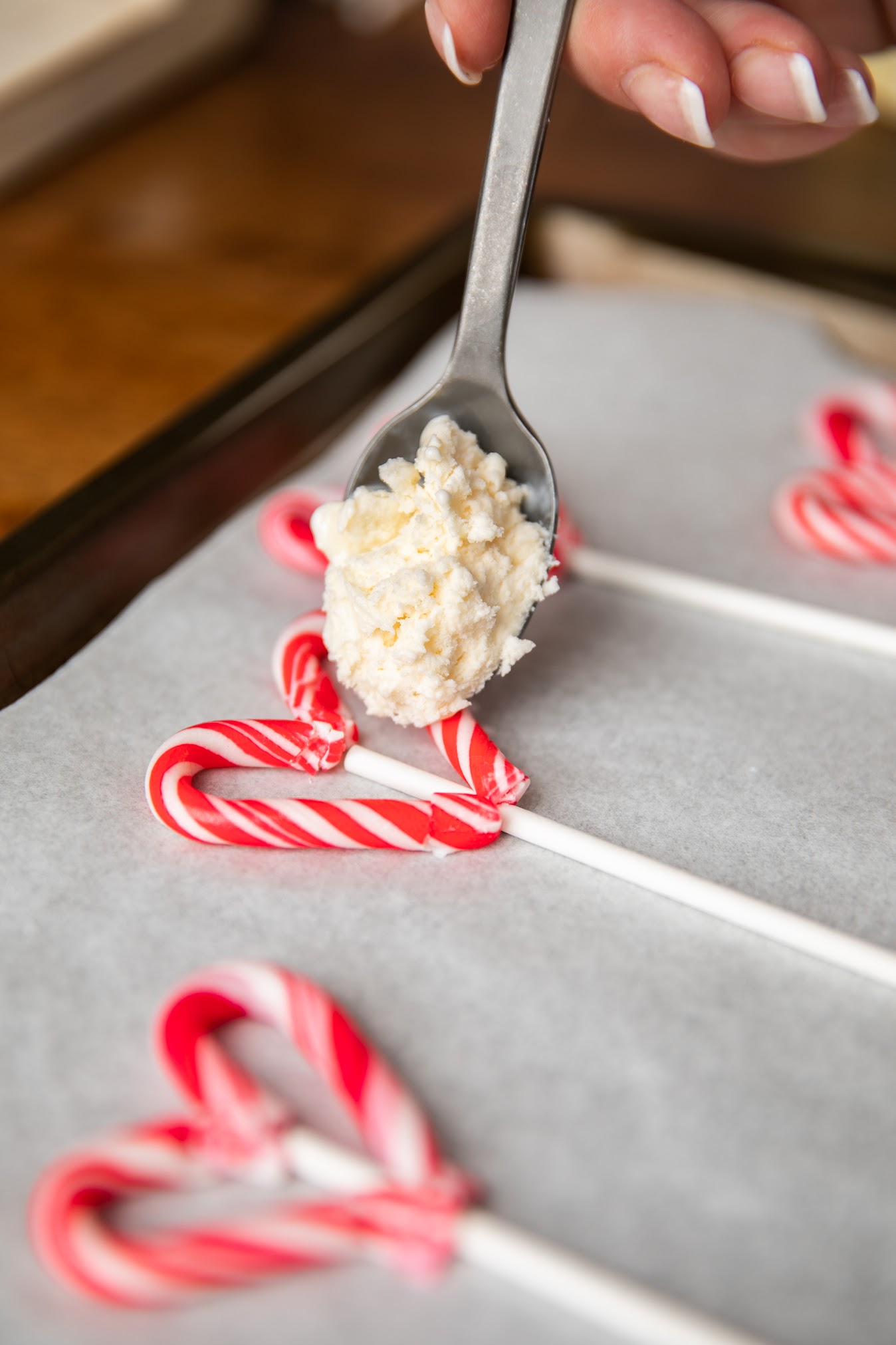- Bake in the oven at 300° for 3 minutes, then remove from the oven and pinch the ends of the candy canes together to form the heart shape.