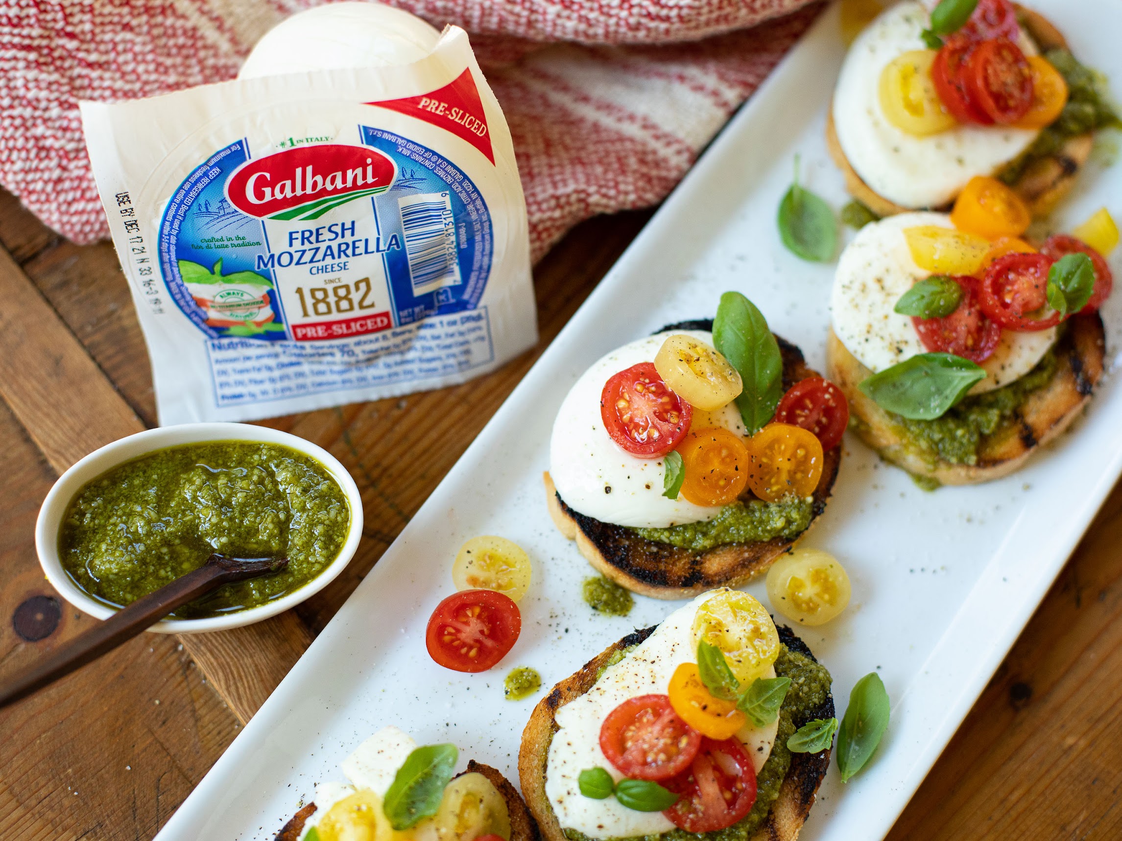 - Top with 1 slice of Galbani® Fresh Mozzarella, tomatoes and a dash of olive oil.