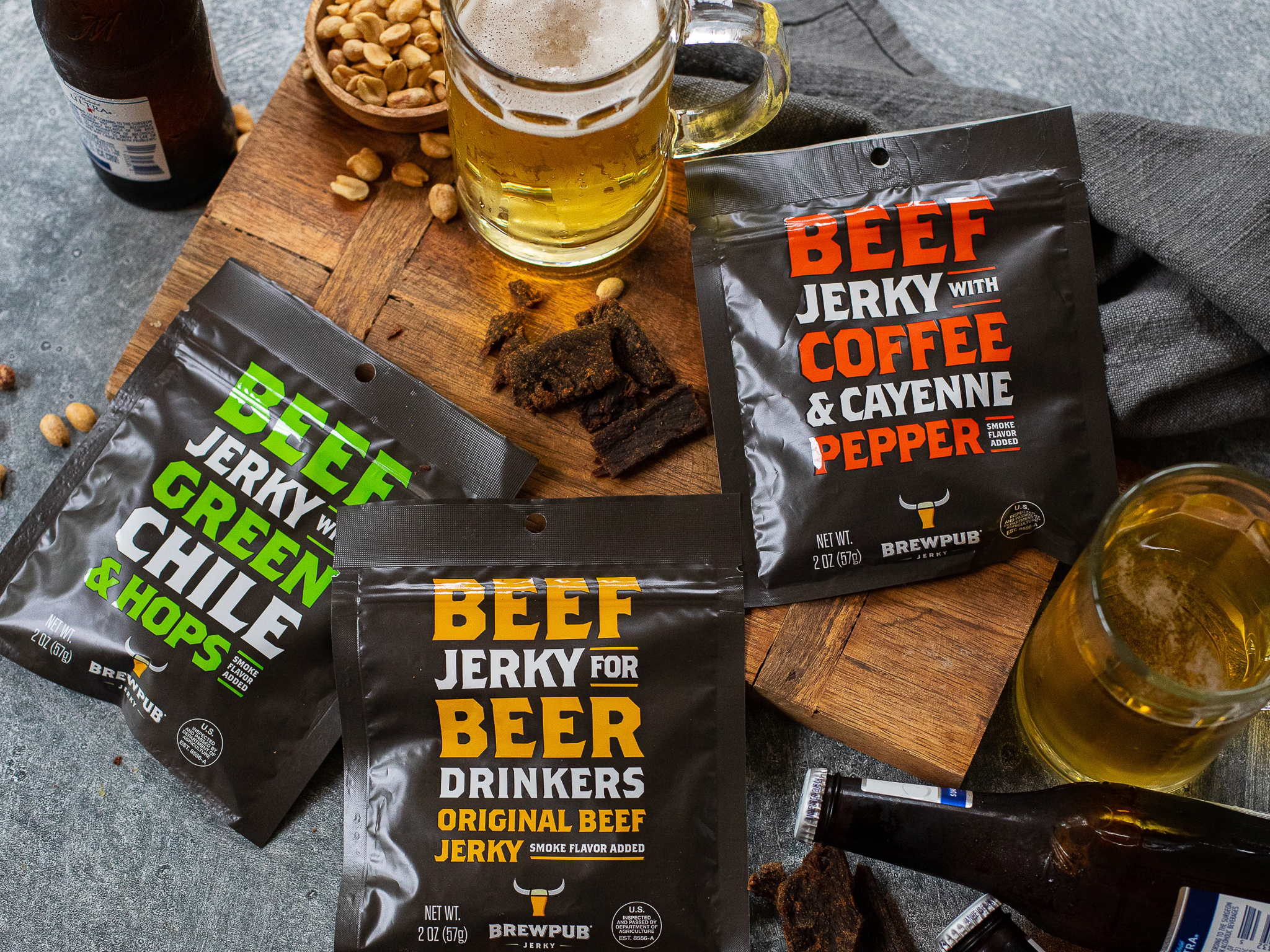 Looking for the perfect snack to go with a cold beer? Brewpub Jerky makes beef jerky that is perfectly crafted to pair with beer, so you can enjoy a delicious, high protein snack with your favorite brew!