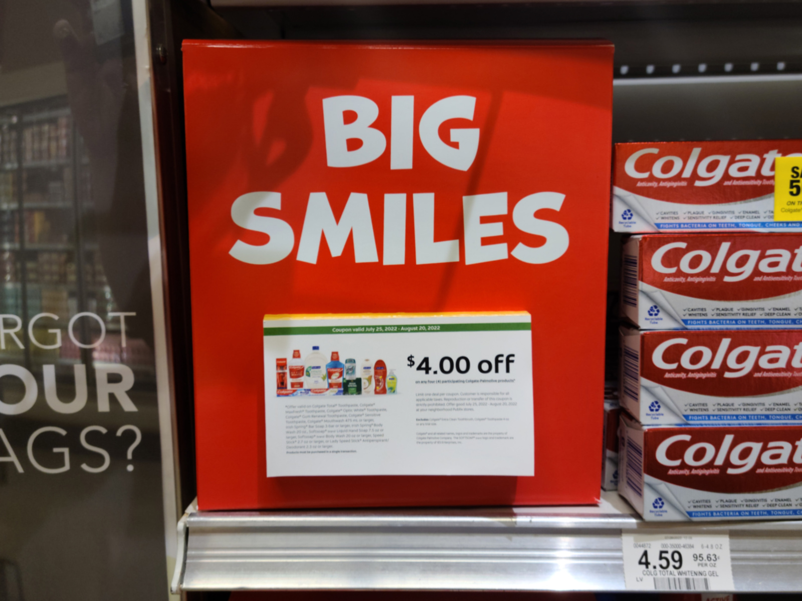 -$4/4 Colgate-Palmolive Publix Coupon, Tearpad (valid 7/25/22 to 8/20/22)