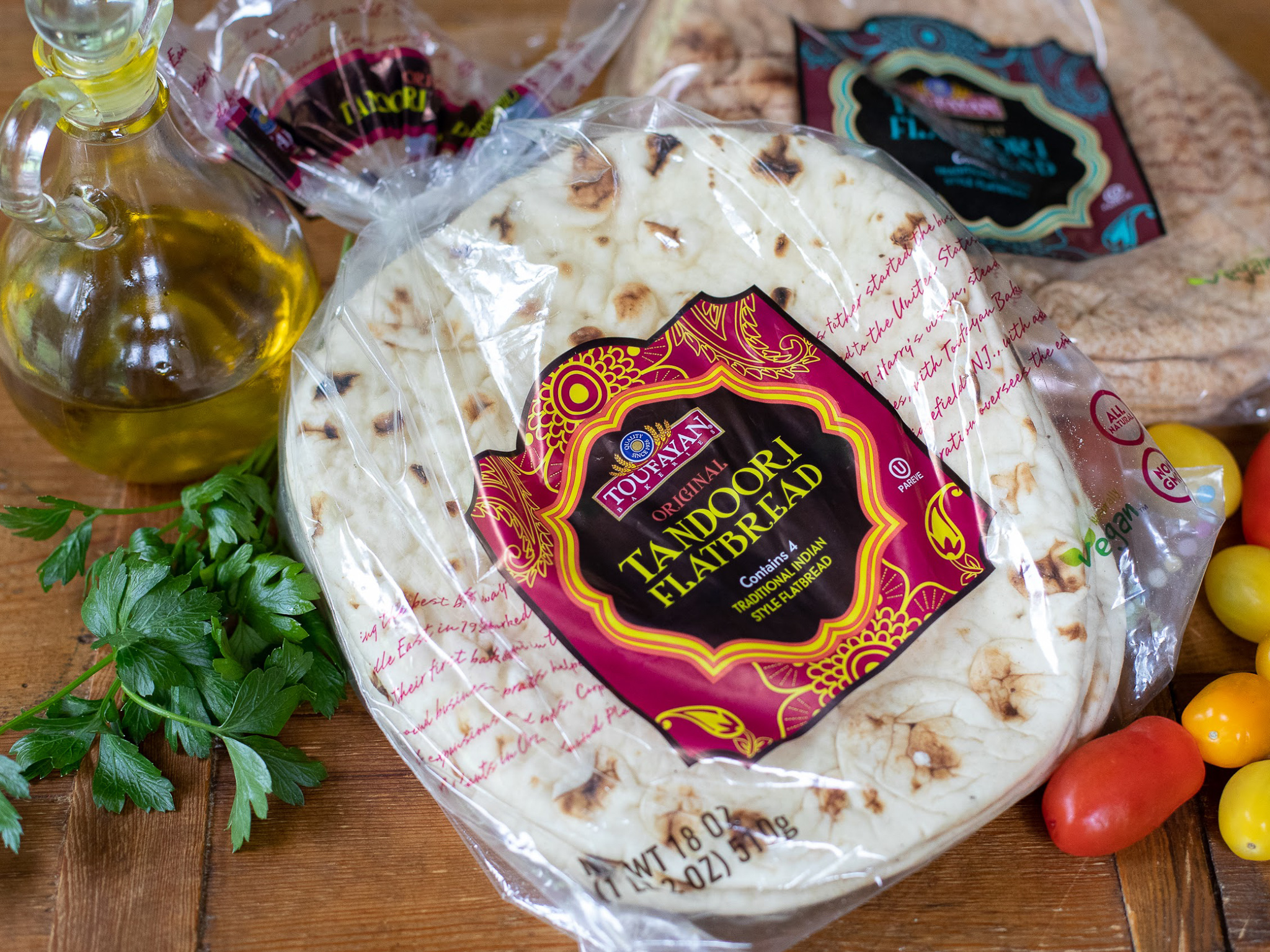 Toufayan Tandoori Flatbread, Wheat, Plain, or Garlic, 18 oz, BOGO $3.49