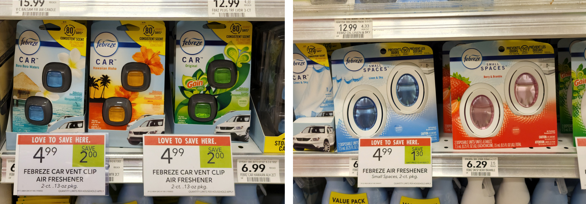 You can grab a nice deal on Febreze Car Clips or Small Spaces at Publix. Combine the coupon and sale to pick up the 2-pks for as little as $2.69 each… that’s just $1.35 per item!