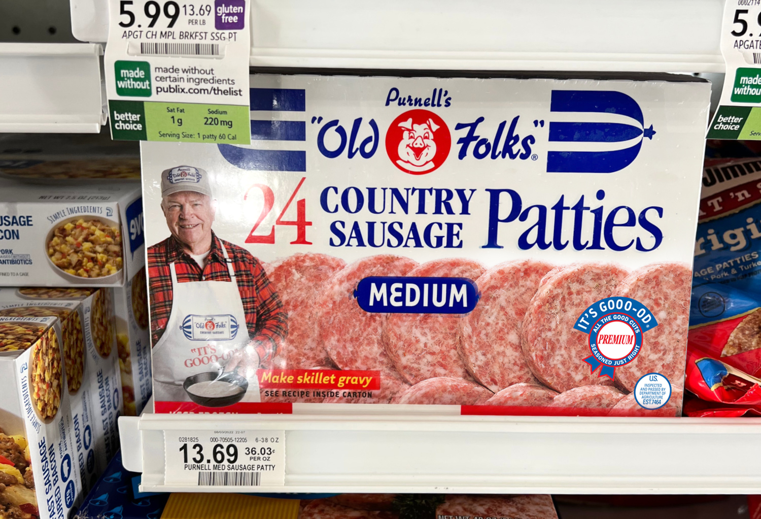 There’s a new product in the freezer aisle at your local Publix! Be on the lookout for the big 24-count boxes of Purnell’s “Old Folks” Country Sausage the next time you shop.