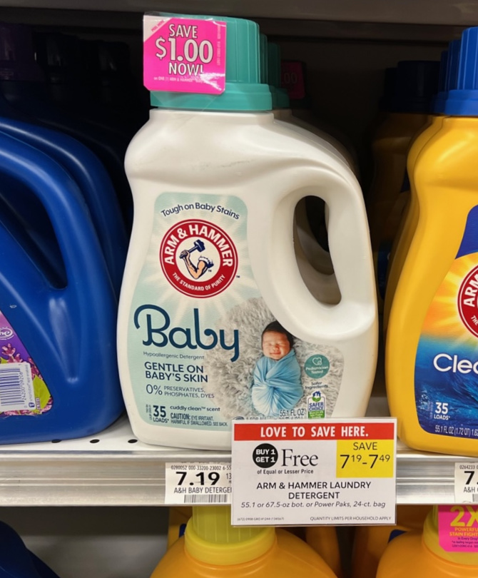 –$1.25/1 Arm & Hammer Baby Laundry Detergent, 55.1 oz (Ibotta Deposit) – Limit 5