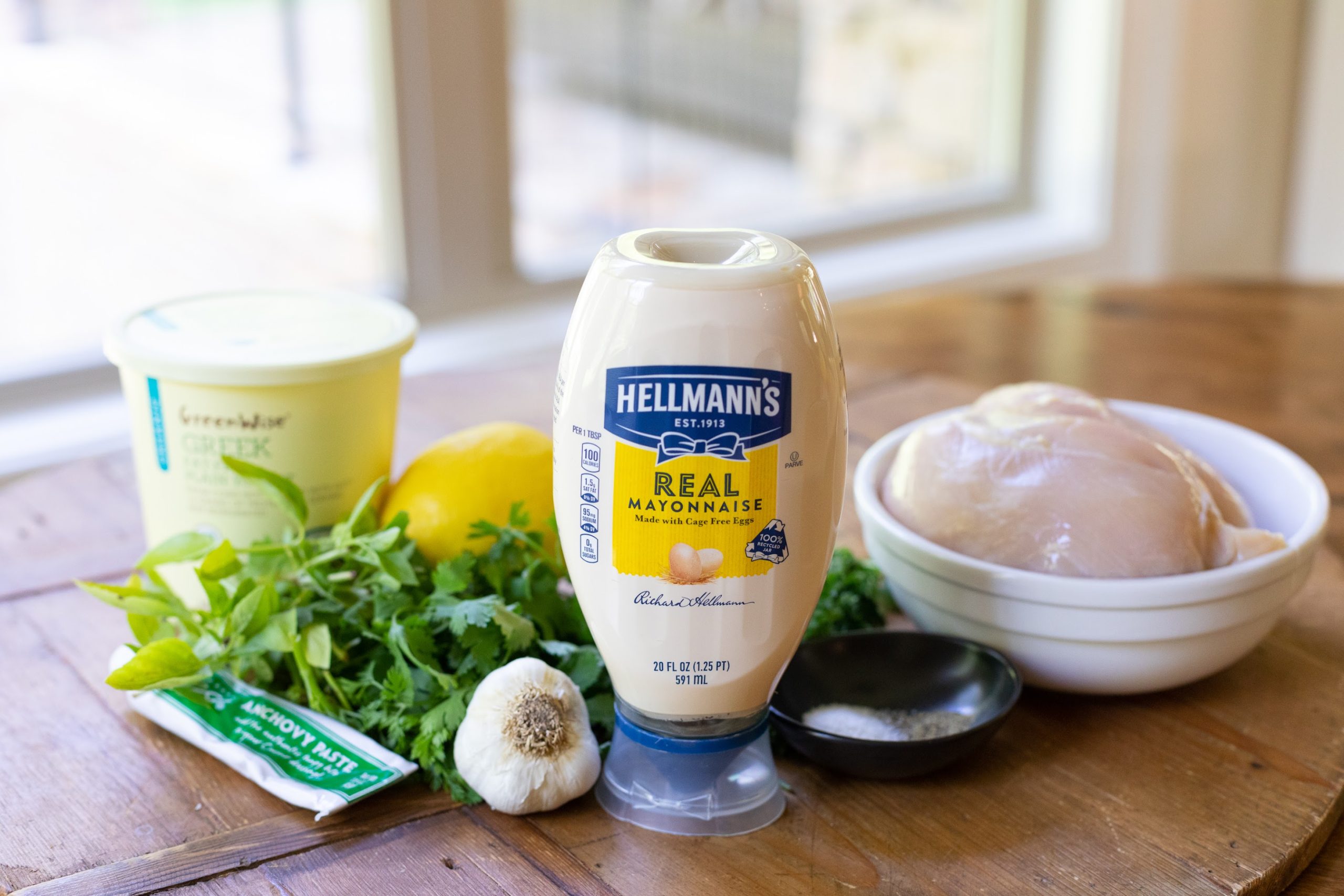 A quick and simple dressing is my secret to some of the juiciest and best tasting chicken you’ll ever eat! Forget dry and bland chicken, grab some herbs, yogurt and a jar of Hellmann’s Mayonnaise and you are on your way to amazing flavor!