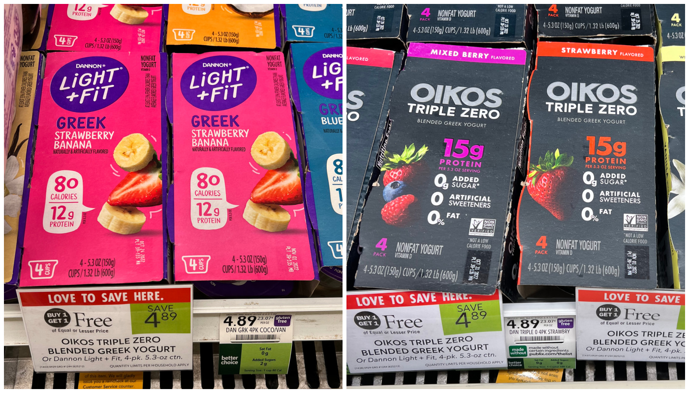 Grab a nice deal on Oikos Triple Zero Blended Greek Yogurt and Dannon Light + Fit Yogurt at Publix. This week the 4-packs are BOGO with a cash back offer to pair up. Unlock your offer and get your favorite flavors for as little as 95¢ per pack… that’s only 24¢ per cup!