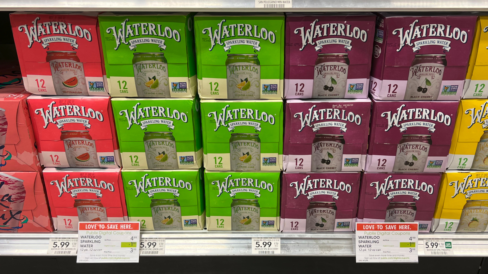 –$1/1 Waterloo Sparkling Water, 12-pk, 12 oz, (Publix Digital Coupon)