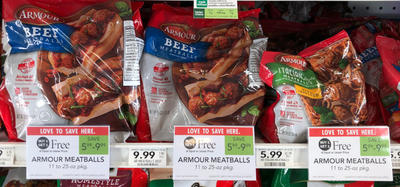 We have digital coupons that means a nice deal on Armour Meatballs at Publix. Use the coupon with the new BOGO sale to grab the bags for as little as $2… great price!