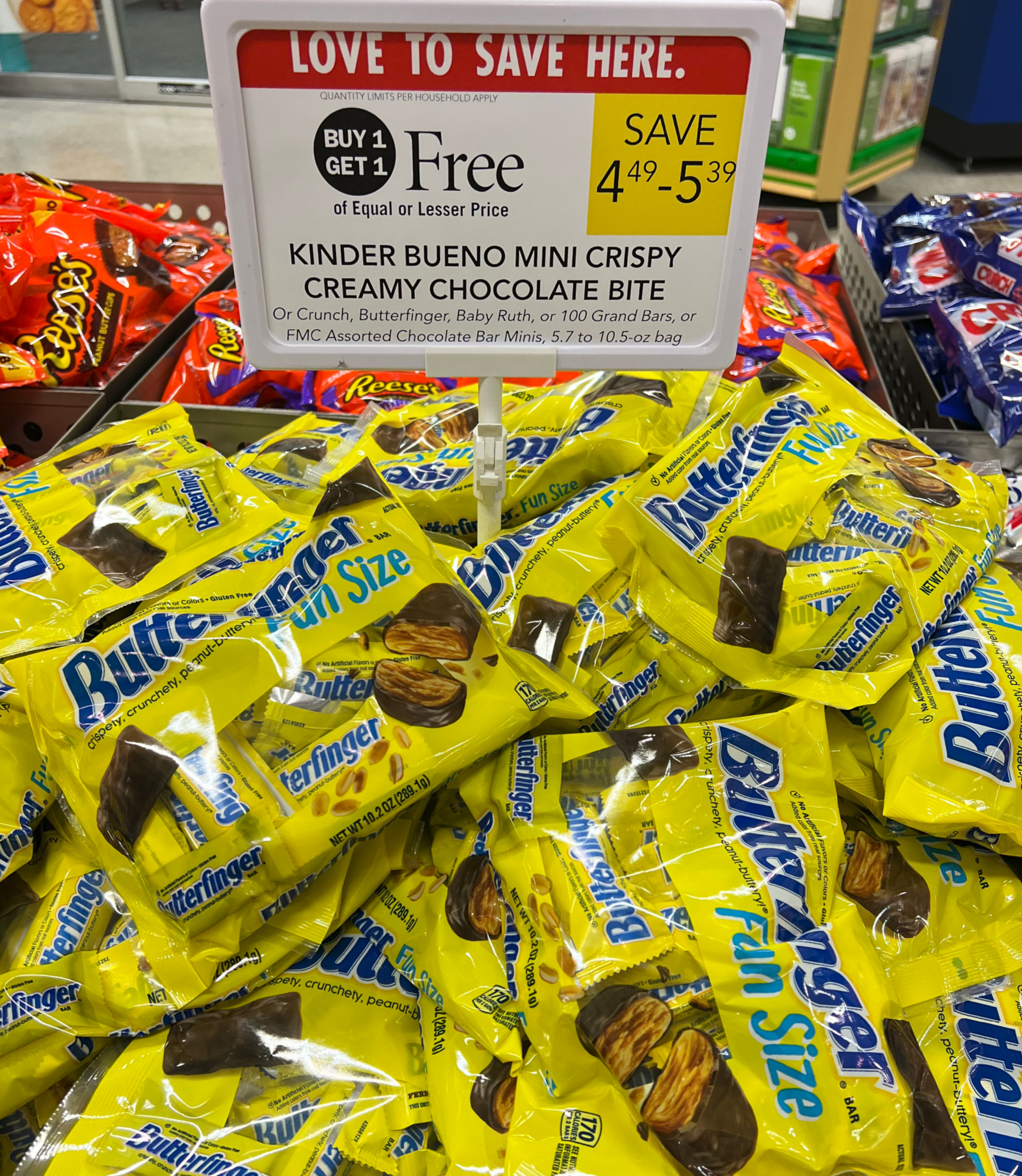 -$2/3 Butterfinger, Crunch, Baby Ruth or 100 Grand Fun Size Bars 10 oz+, 9/18 SS (exp 11/01/22)