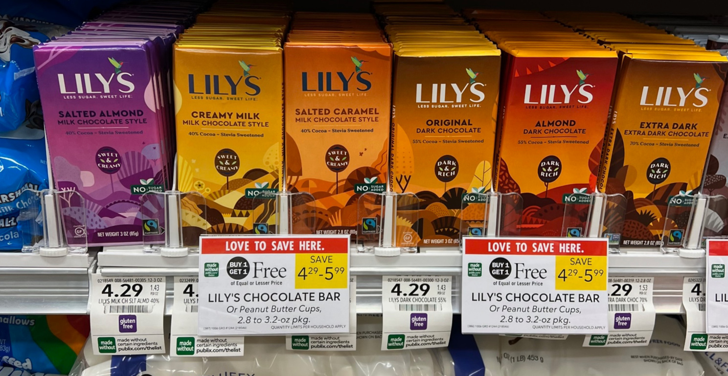 Pick up a sweet treat this week when you shop at Publix. Print your coupons and get your favorite Lily’s Chocolate Bars for as little as $1.15 each.