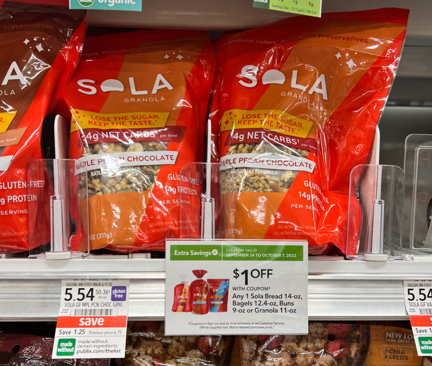 -$1/1 Sola Bread, 14 oz, Bagels, 12.4 oz, Buns, 9 oz, or Granola, 11 oz, Extra Savings Flyer In-Ad Publix Coupon (valid 9/24 to 10/7)