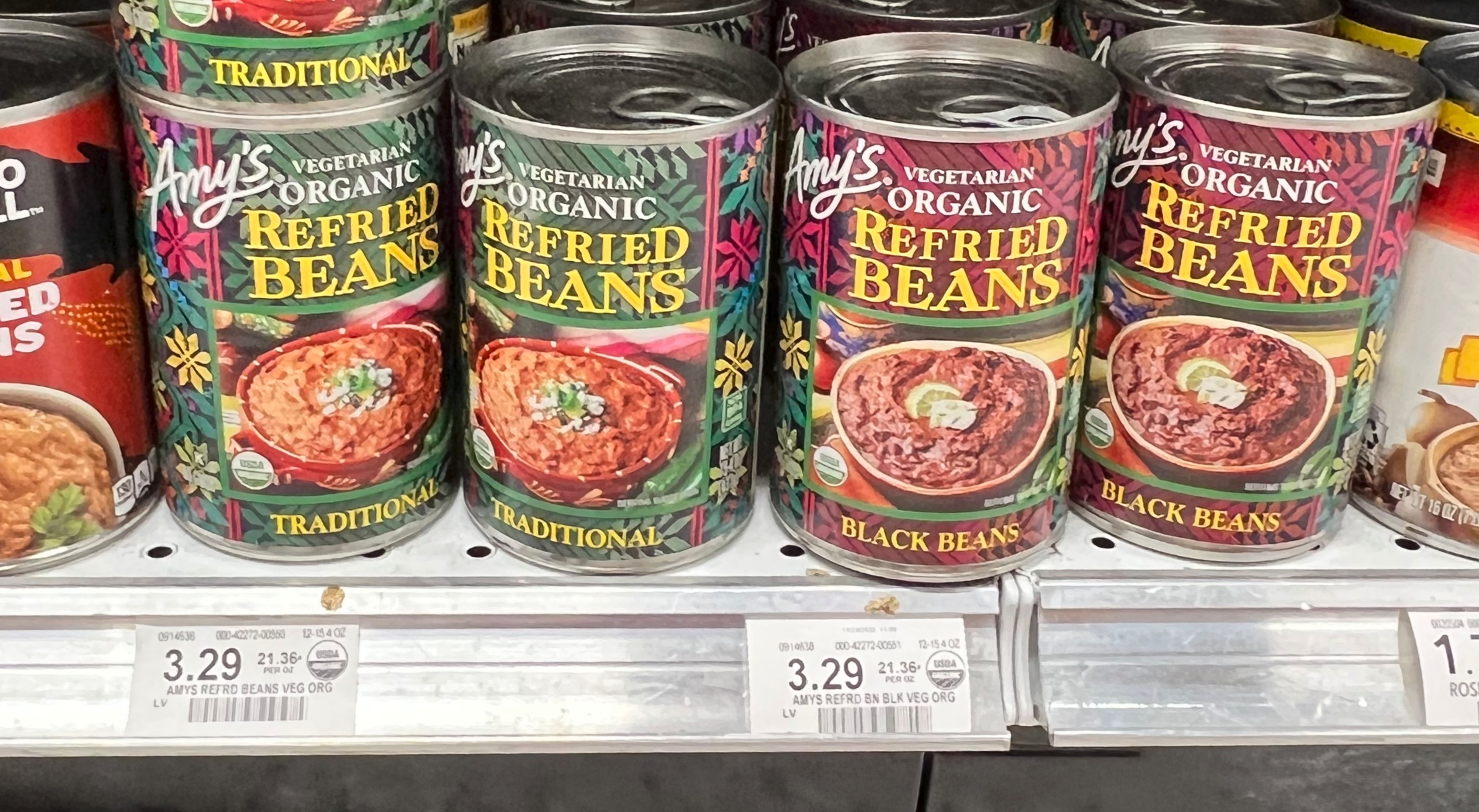 Amy’s Organic Refried Beans, 15.4 oz, $3.29