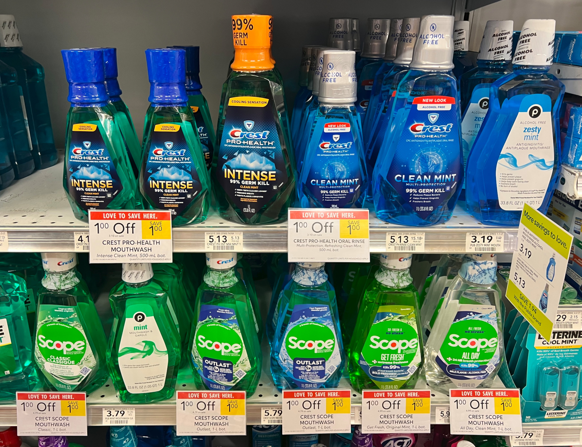 –$1/1 Crest OR Scope Mouthwash 473 mL (16 oz) or larger (excludes trial/travel size) (Publix Digtial Coupon)