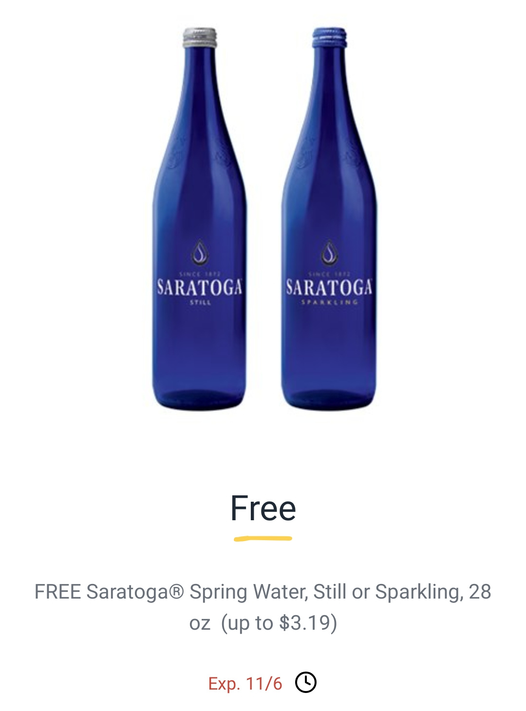 FREE Saratoga® Spring Water, Still or Sparkling 28 oz (up to $3.19) Publix Digital Coupon