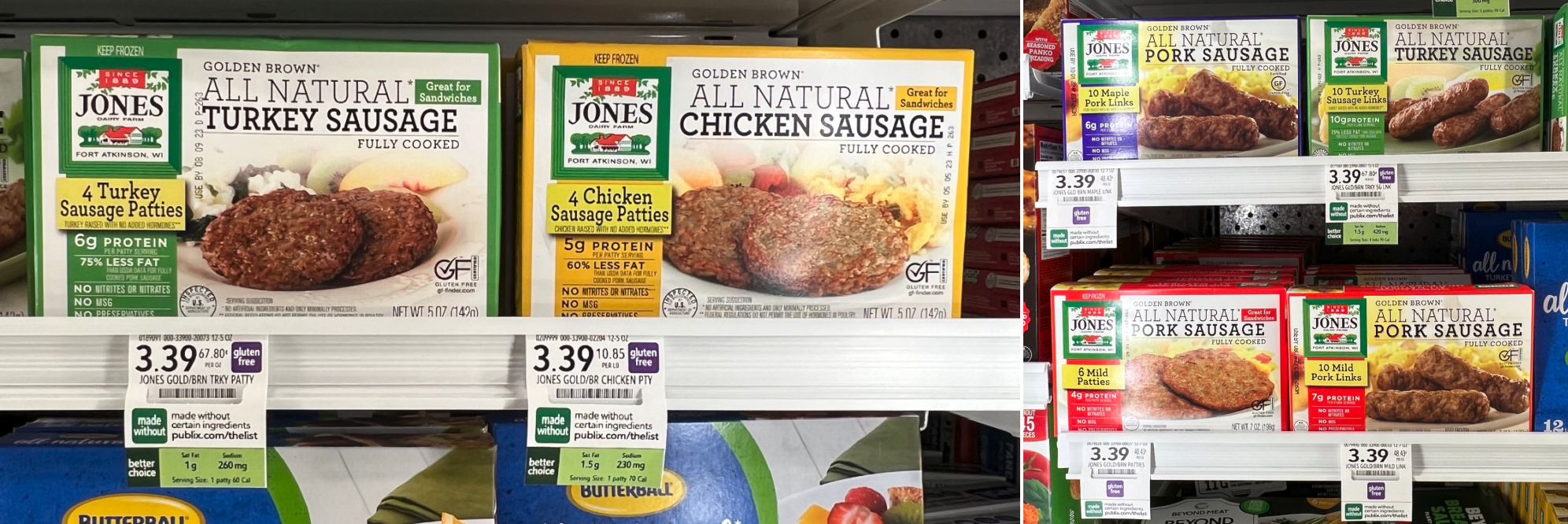 Jones’ all natural breakfast sausage products are Certified Gluten-Free. Try our pork, turkey or chicken sausage as links, patties or rolls!