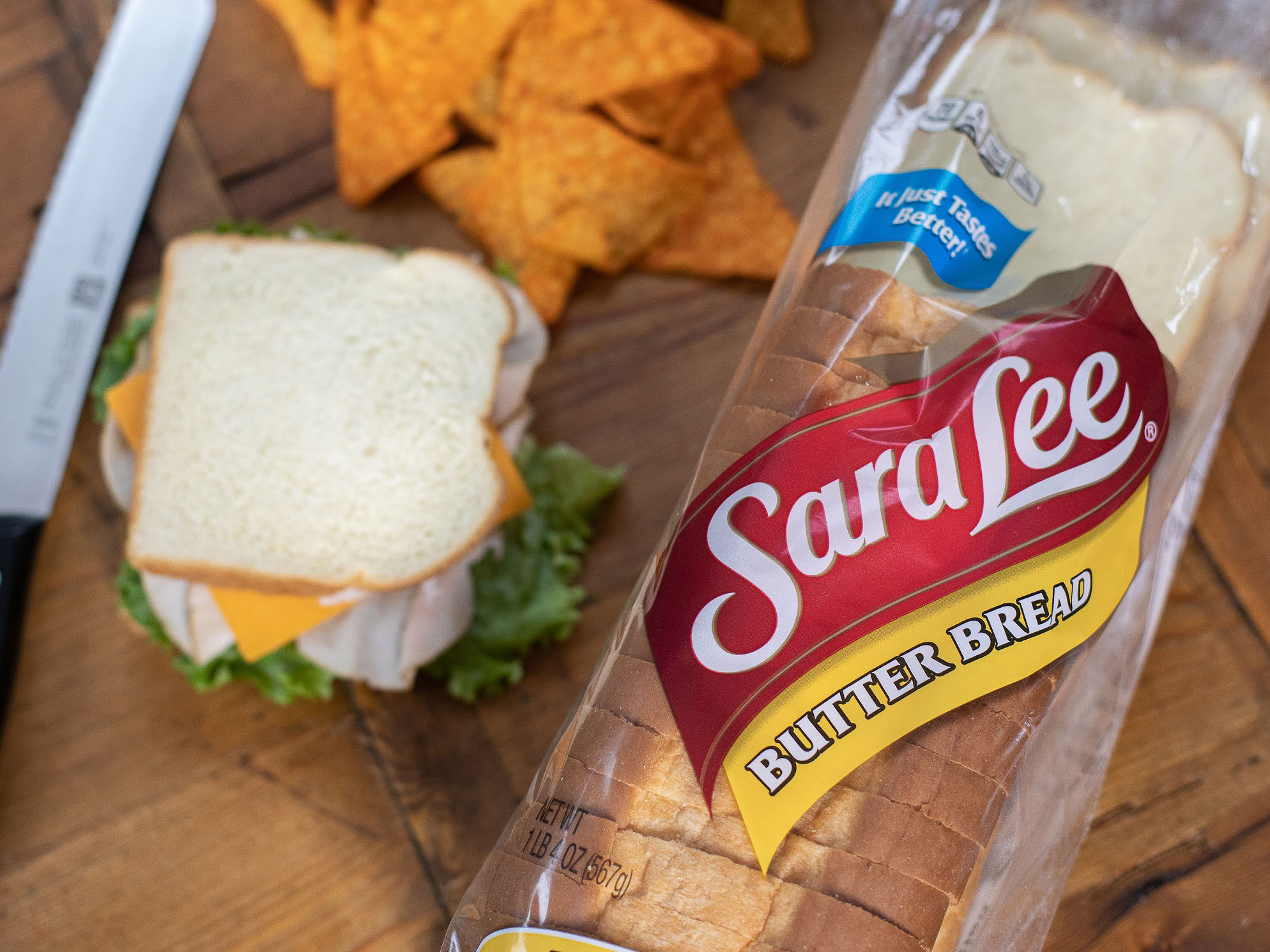 Add the classic flavor combination of bread and butter to your family’s favorite sandwiches with Sara Lee Butter Bread. With its rich, buttery taste, wonderful aroma and velvety texture, you’ll love this new recipe – It Just Tastes Better! (Compared to Sara Lee Butter Bread’s prior recipe).