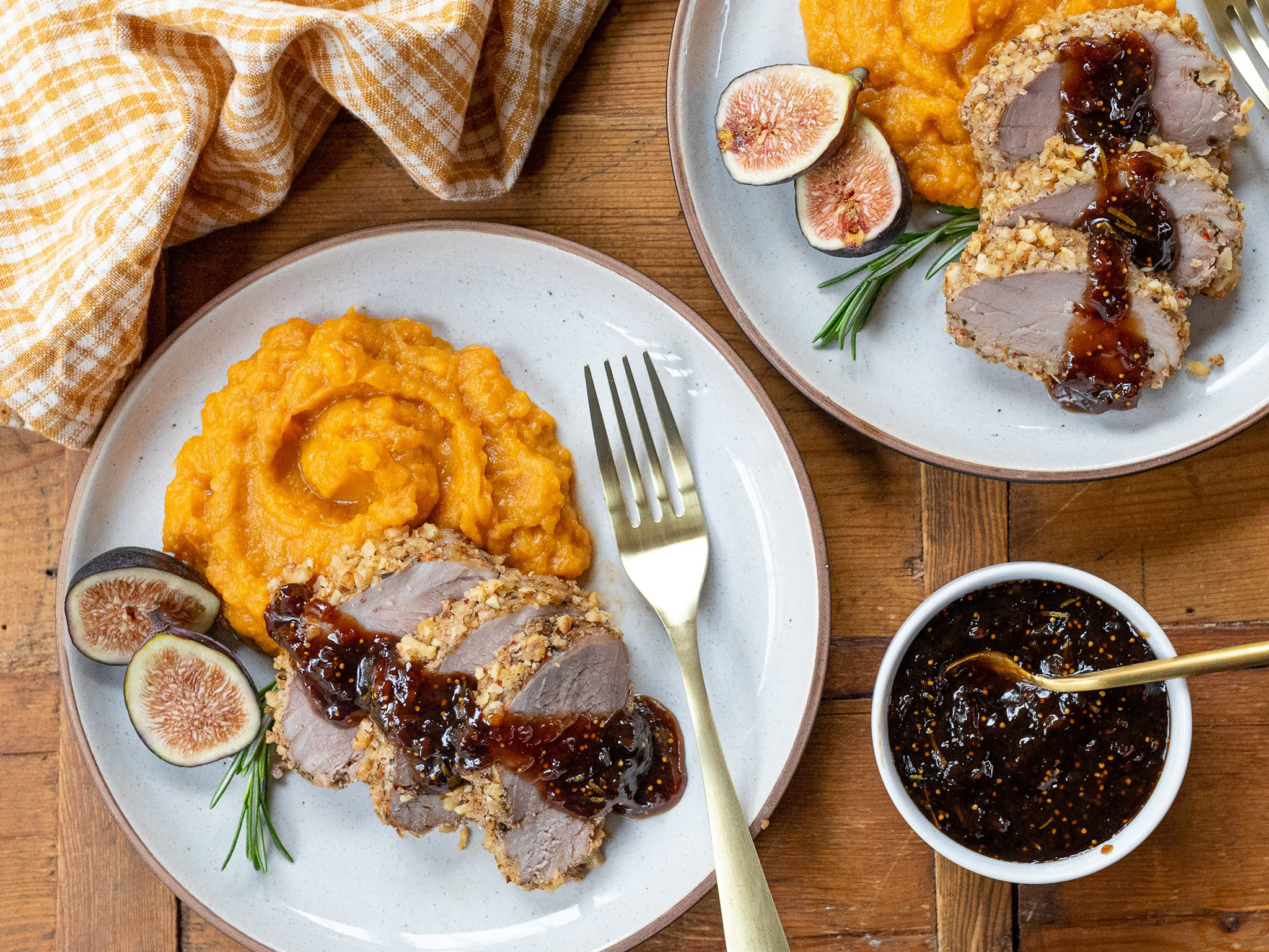 For most of us, the goal of the holiday gathering is spending time with those we hold near and dear… not waiting hours and hours that perfectly roasted turkey. So if you are looking to shake up your usual holiday menu, I have the perfect meal—my Walnut Crusted Pork Tenderloin with Balsamic Fig Sauce.