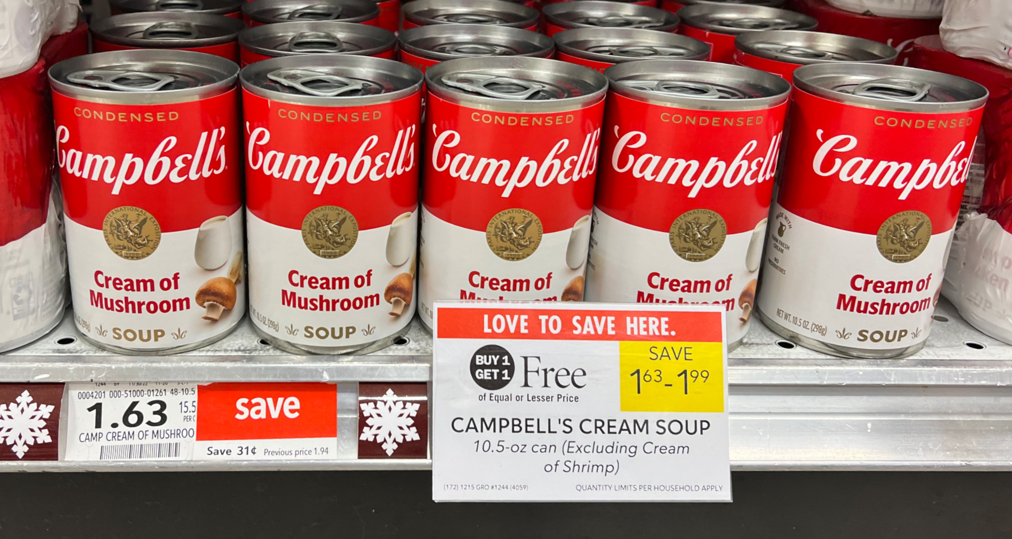 Campbell’s Cream Soup, 10.5 oz, (Excluding Cream of Shrimp), BOGO $1.63 – $1.99