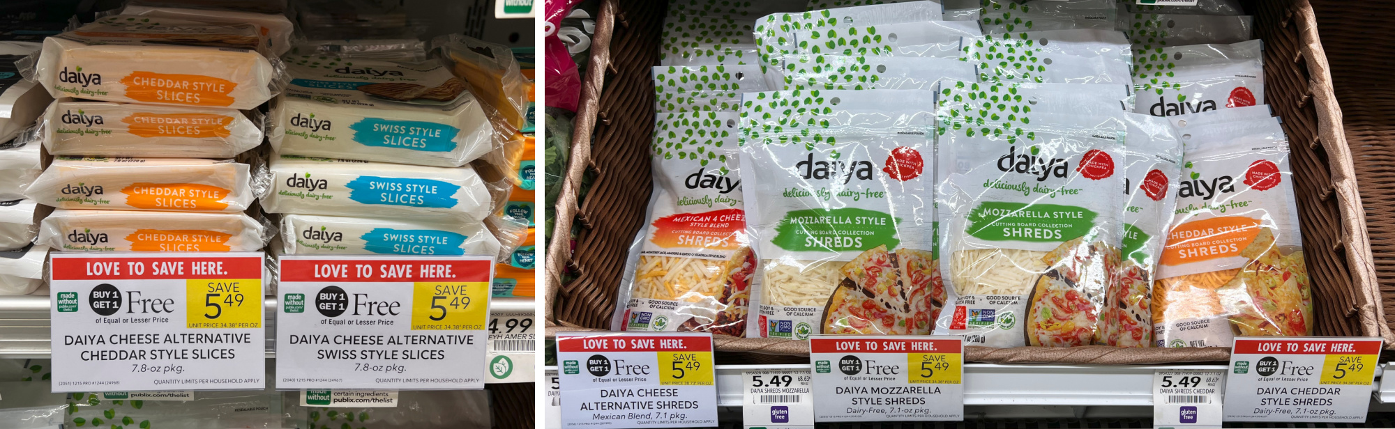 You can pick up Daiya Dairy Free Slices & Shreds at a super discount. Grab the packs for just 75¢ each after the sale and coupon combo.