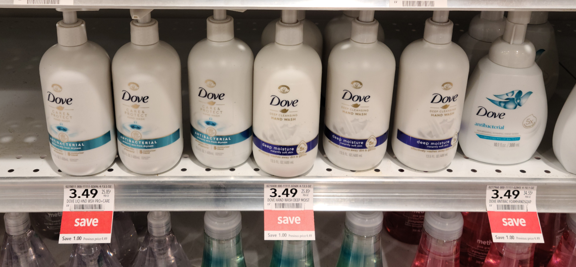 Dove Hand Wash, 10.1 to 13.5 oz, $3.49 (reg $4.49)
