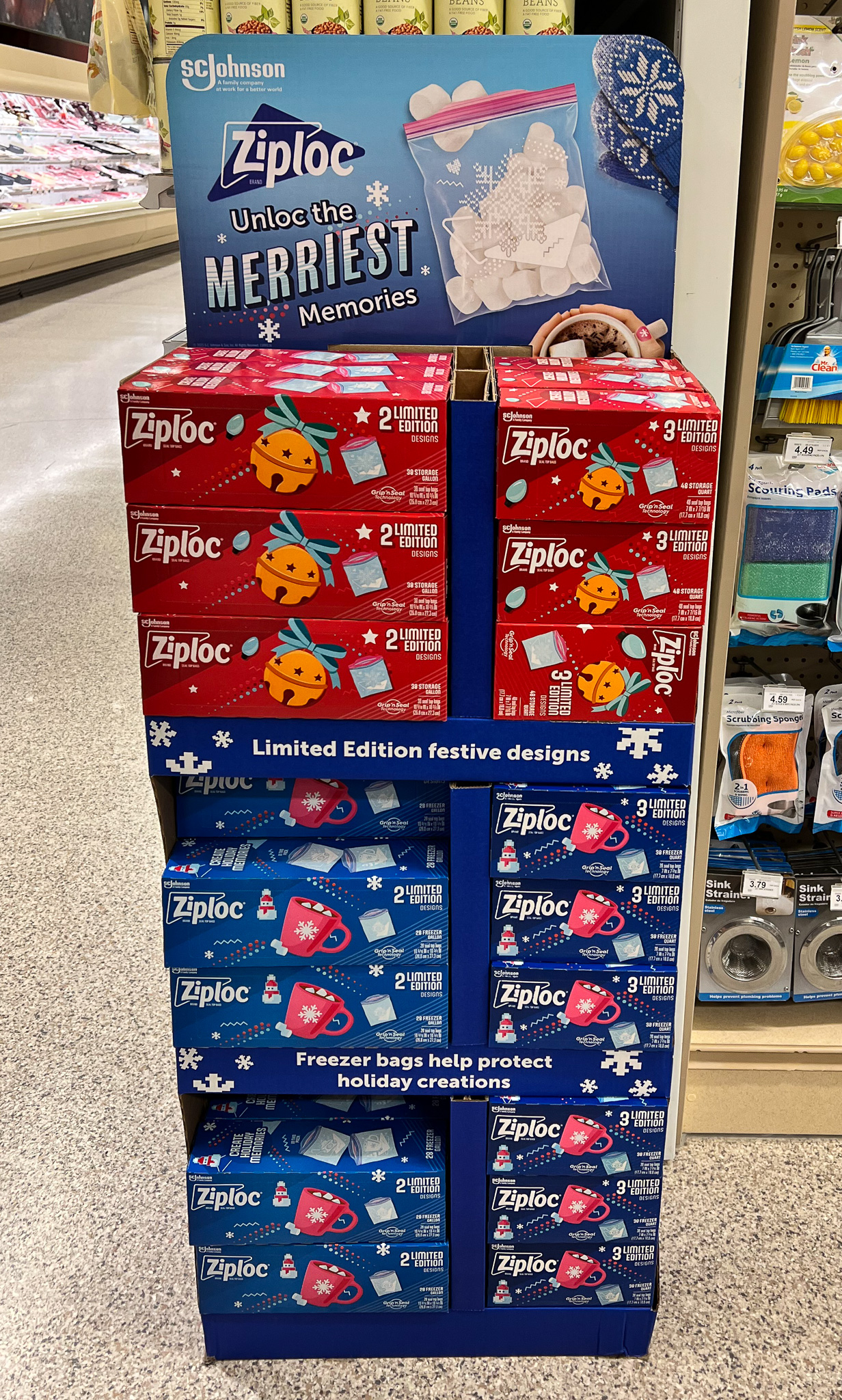 Be on the lookout for an in-store display featuring the limited edition Ziploc® brand bags at your local Publix. Right now you can get a great deal too! Look for select sizes on sale as part of the Publix ad valid 12/8 to 12/14 (12/7 to 12/13 for some). Pick up a great deal and add a little cheer to your holiday season!