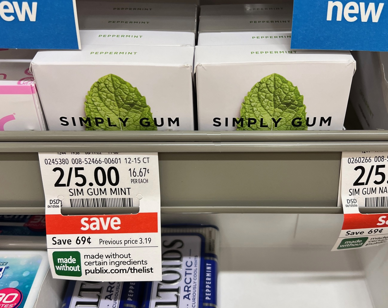 Simply Gum, 15 ct, 2/$5 (reg $3.19)