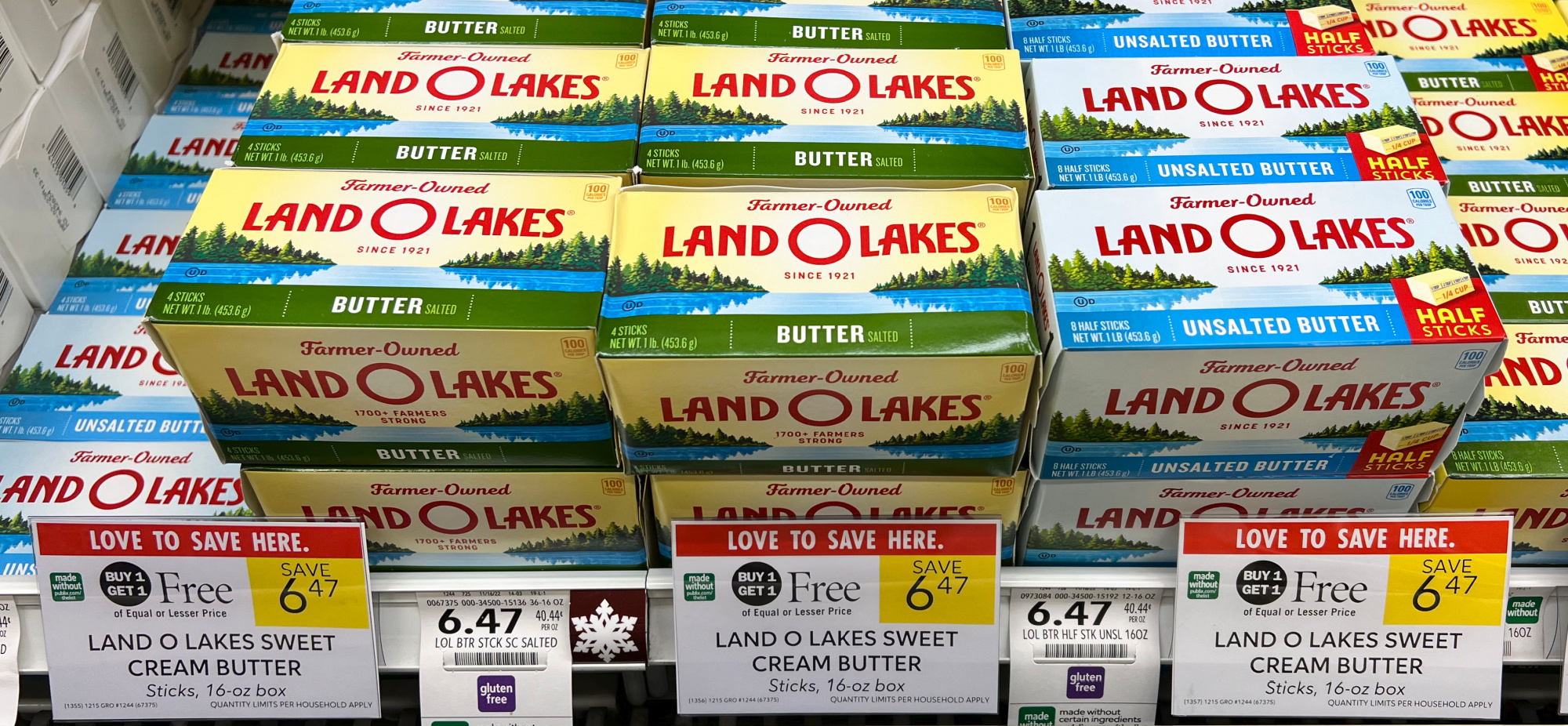 Land O Lakes Sweet Cream Butter, or European Style Extra Creamy, Sticks, 16 oz, BOGO $6.47 – $8.19