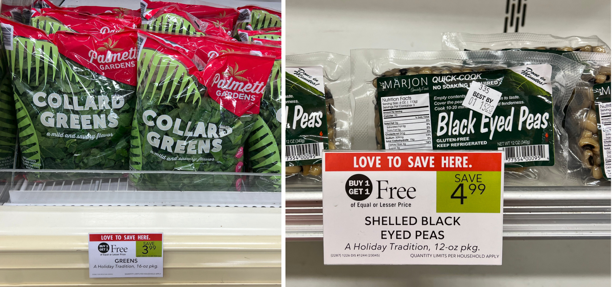 Right now you can pick up a nice deal on Black Eyed Peas and Greens at Publix. Get ready for you New Year’s Dinner on the cheap!