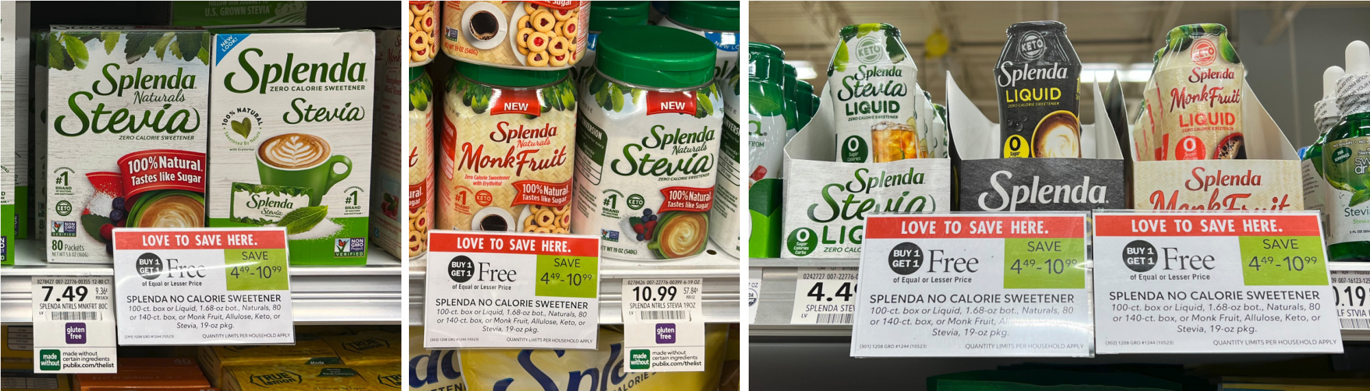 You can pick up a super deal on Splenda Stevia Sweetener. Combine the BOGO sale, coupon and cash back to pick up the boxes of packets for as little as FREE at Publix. Plus grab nice deals on some of the other Splenda products too!