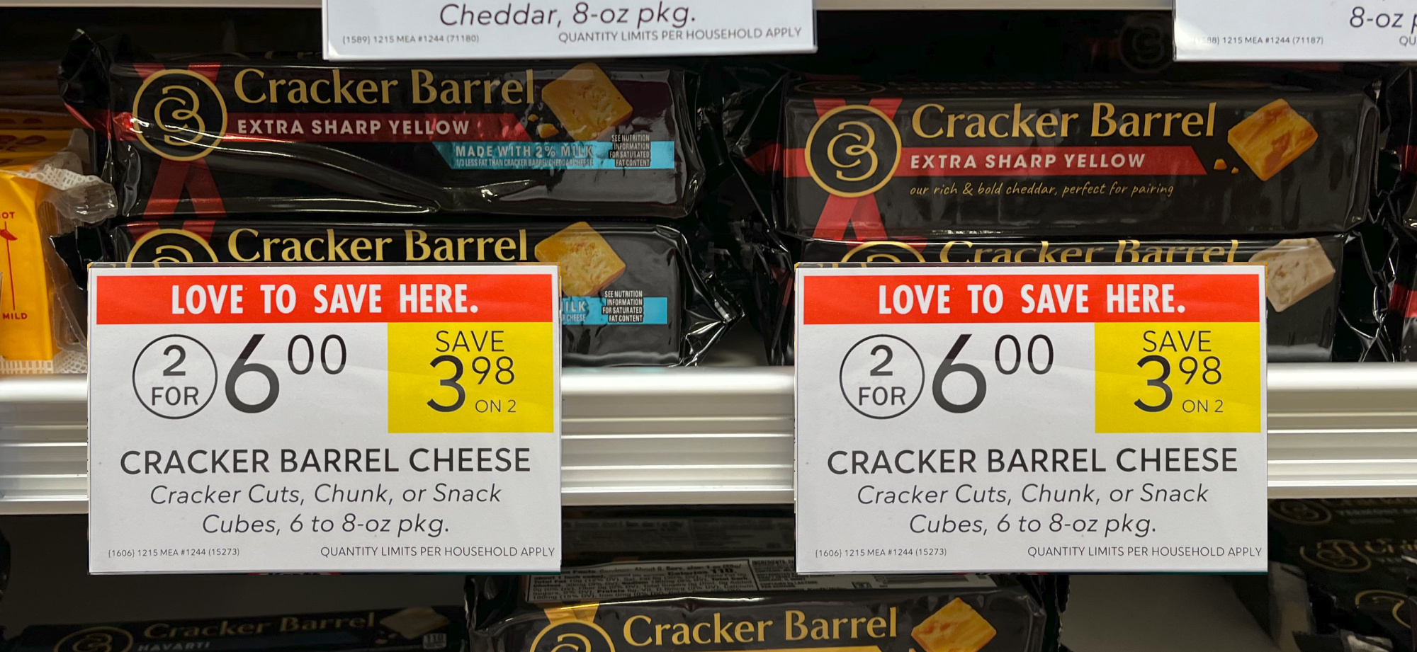 Cracker Barrel Chunk Cheese, or Snack Cubes, Cracker Cuts, or Slices, 6 to 8 oz, 2/$6